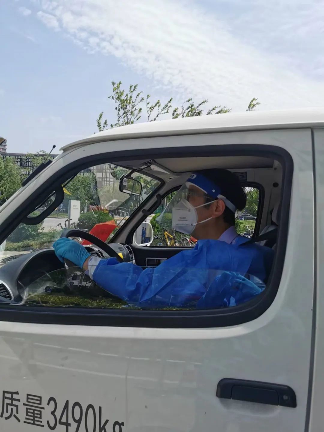 我们在3号点位,郑老师是司机,负责将冬日厅、秋实阁的餐食运送到各个楼宇。看到郑老师从早晨一开始不熟悉那个电动车的拉杆操作,到中午非常顺滑地开着货拉拉在校园里一趟趟往返运送盒饭。