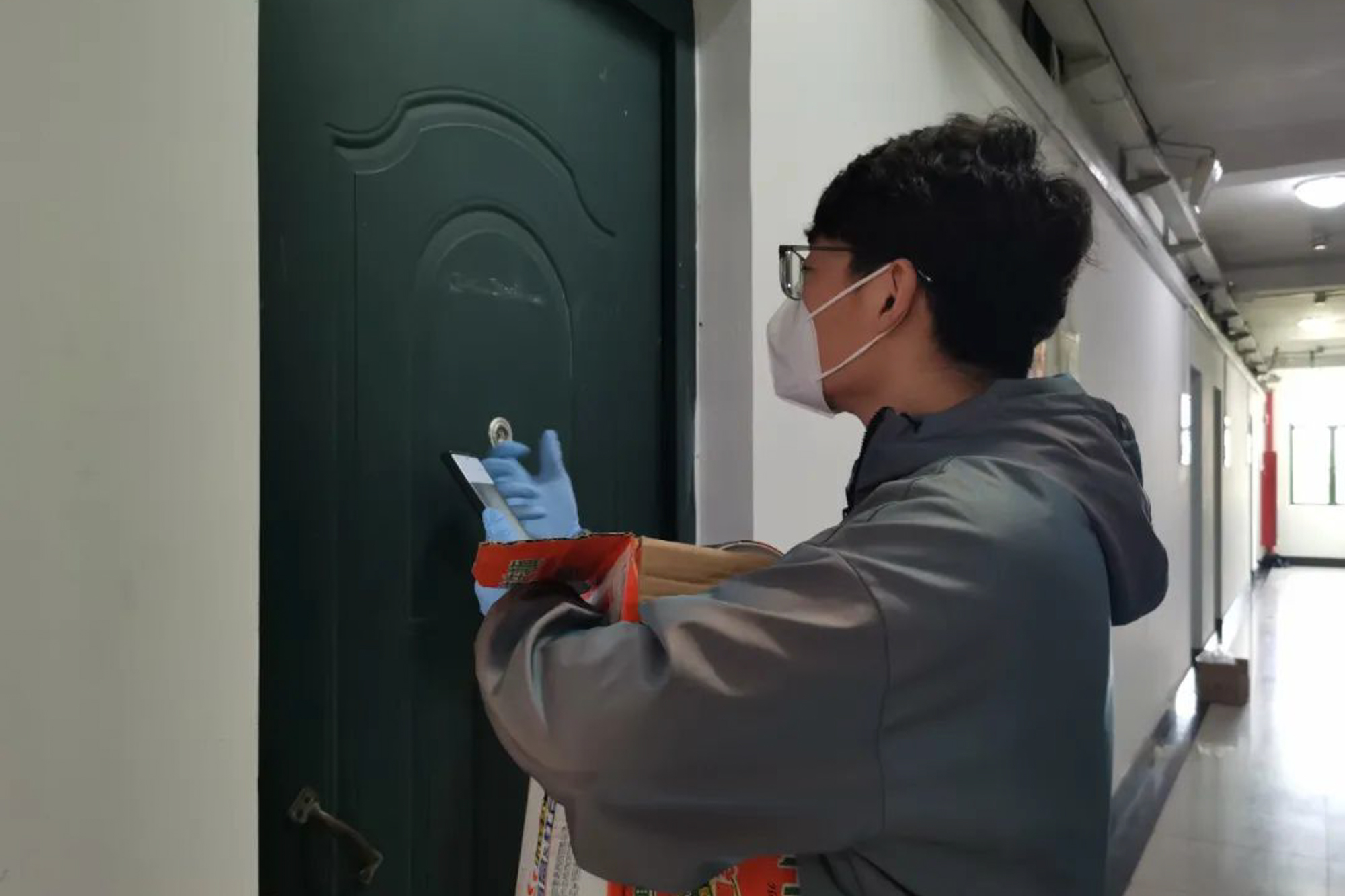 要想维持楼宇的正常运转,除了楼长这个中介和枢纽之外,直面每个同学的层长也是不可或缺的。在“足不出区”网格化封闭管理阶段,为了严格执行无接触配送的要求,5号楼2层层长政治与国际关系学院政治哲学与思想史专业的李钺每天要把午餐和晚餐送到本层38位同学宿舍门口的纸箱。