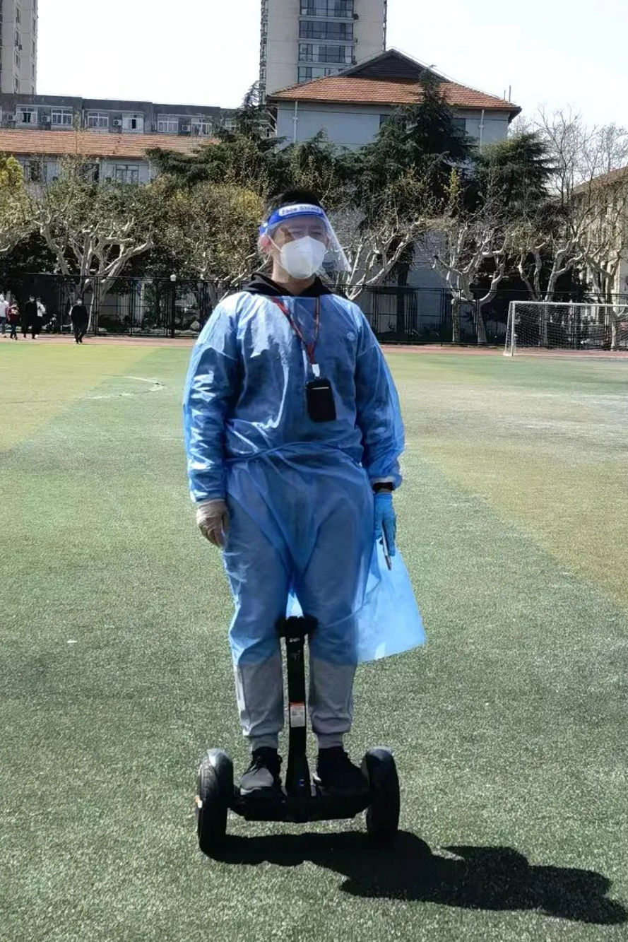 薛寅申在解除隔离和缓冲后,仅休整了1天,又逆行进入整个普陀校区人数最多的楼宇,担任封控楼楼长,他坦言首批“逆行者”的线上工作为他的线下工作提供了丰富的经验。