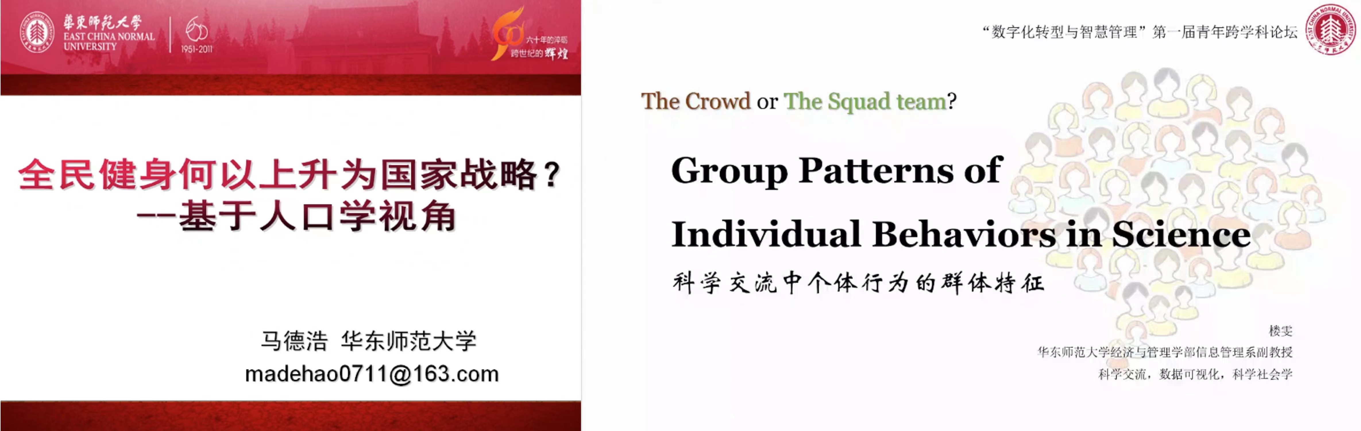 在论坛专题报告环节,马德浩副教授以“全民健身何以上升为国家战略?——基于人口老龄化的视角”为题作专题报告。他提出,人口老龄化的进展给国家带来了严峻的挑战,在未来40年,中国的养老负担将迅速扩大,这就要求尽快构建国民健康促进体系。楼雯副教授的专题报告以“科学交流中个体行为的群体特征”为题,指出研究者在个体和群体之间都具有一定的差异性,兴趣是驱动科学前进的重要动力。