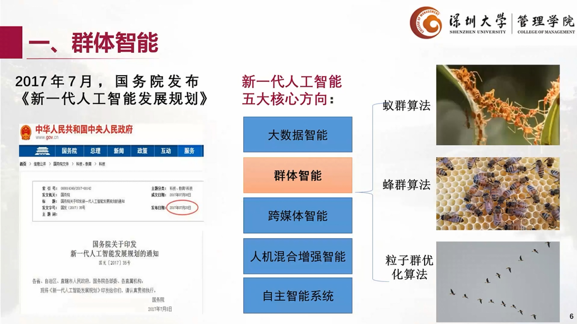 牛奔教授的报告以“基于群体智能的医疗辅助诊断方法与系统”为题,从研究背景、人工智能与群体智能、菌群优化与菌群特征选择算法、基于菌群优化的医疗辅助诊断和团队建设五个方面展示了相关研究内容和研究成果。