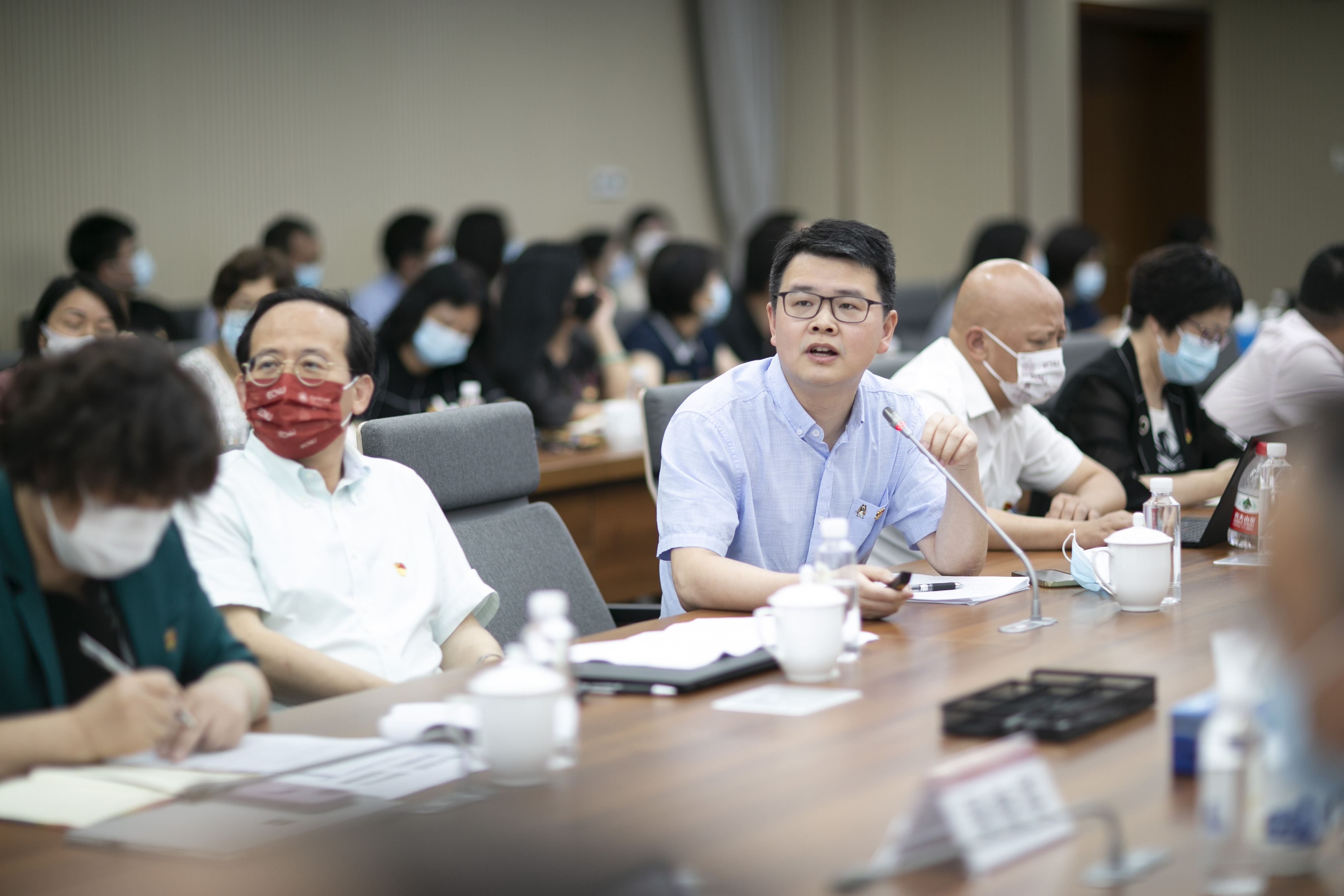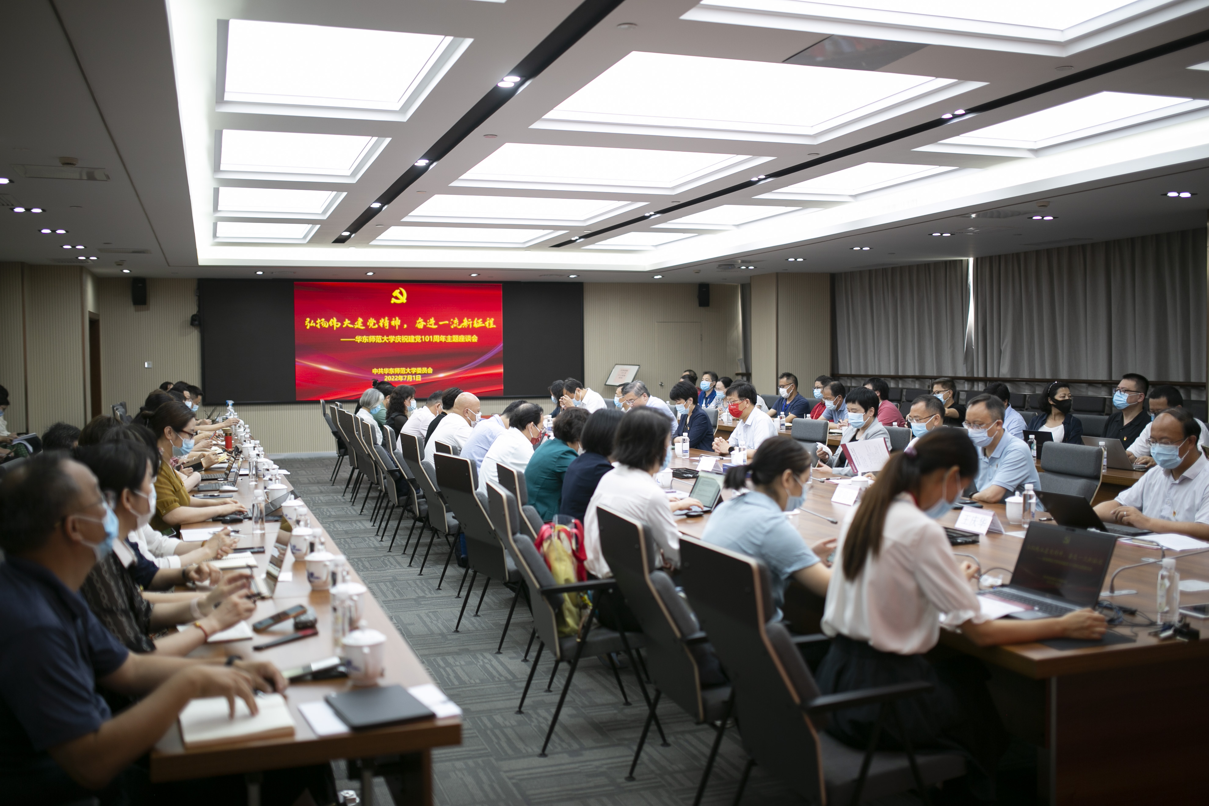 校领导梅兵、钱旭红、朱民、杨昌利、曹友谊、周傲英、戴立益、雷启立,党委常委、组织部部长程静,党委常委、统战部部长王庆华,全校院系级党组织书记、党委职能部门负责人、工青妇负责人,党员代表等同志出席座谈会。校党委副书记朱民主持会议。此次会议同时作为校党委理论学习中心组学习扩大会。