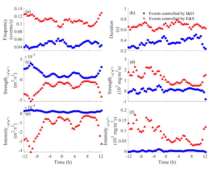 本研究发现了湍流相干结构的在感潮河口环境中的潮周期变化特性,并指出了内在的动力机制,提出了描述湍流间歇性的新指标,加深了对底边界层内湍流结构的认识,为未来的微观尺度沉积-动力过程研究提供了重要的线索和思路。