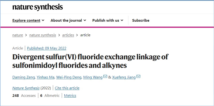 Nature Synthesis刊发相关科研进展