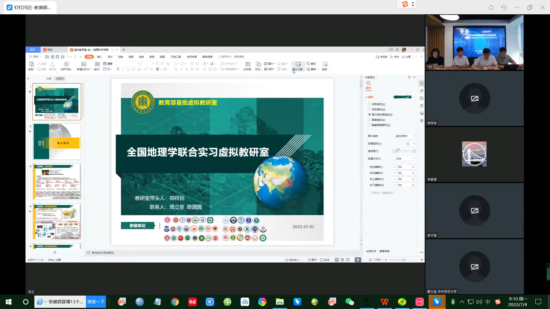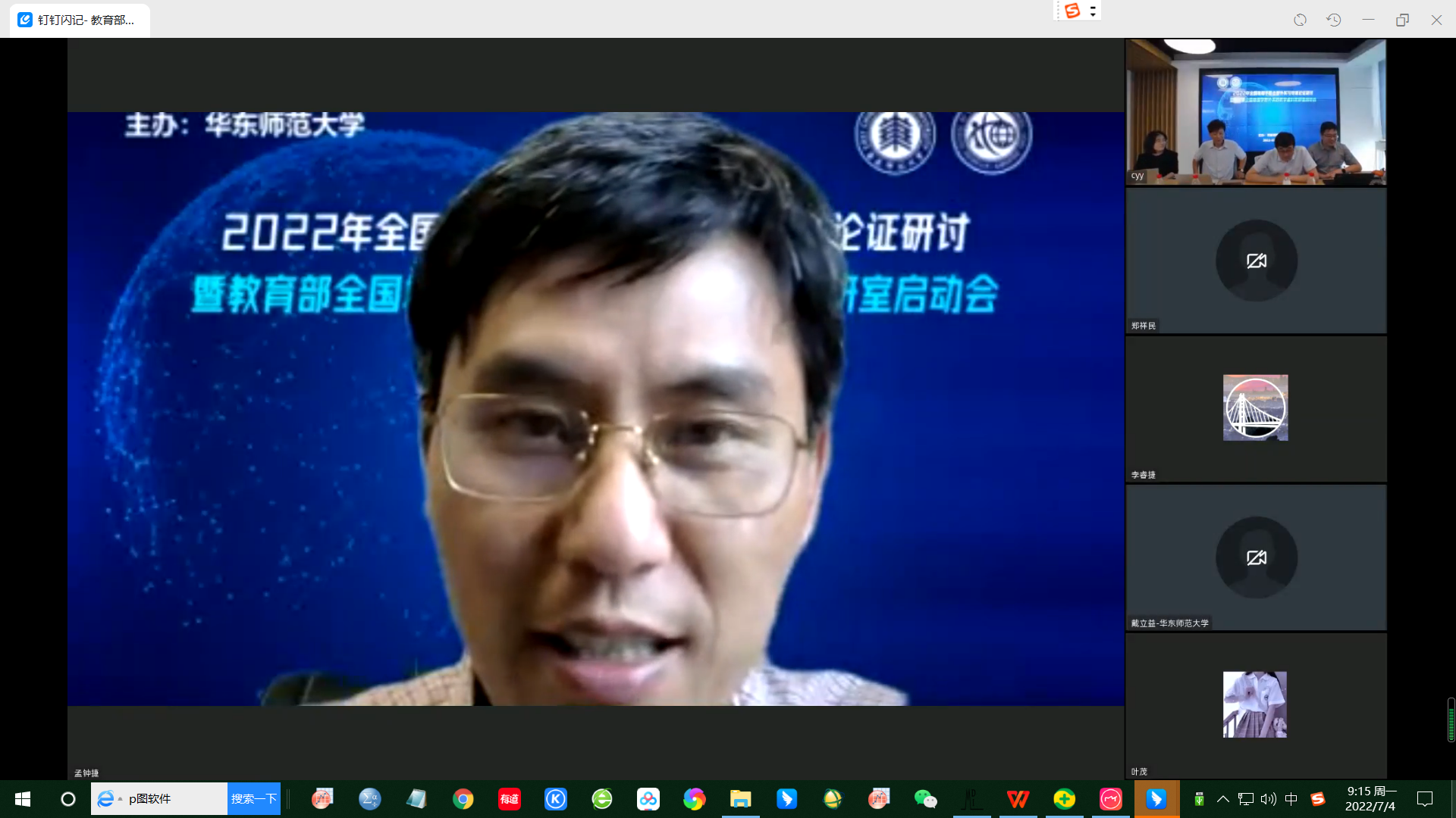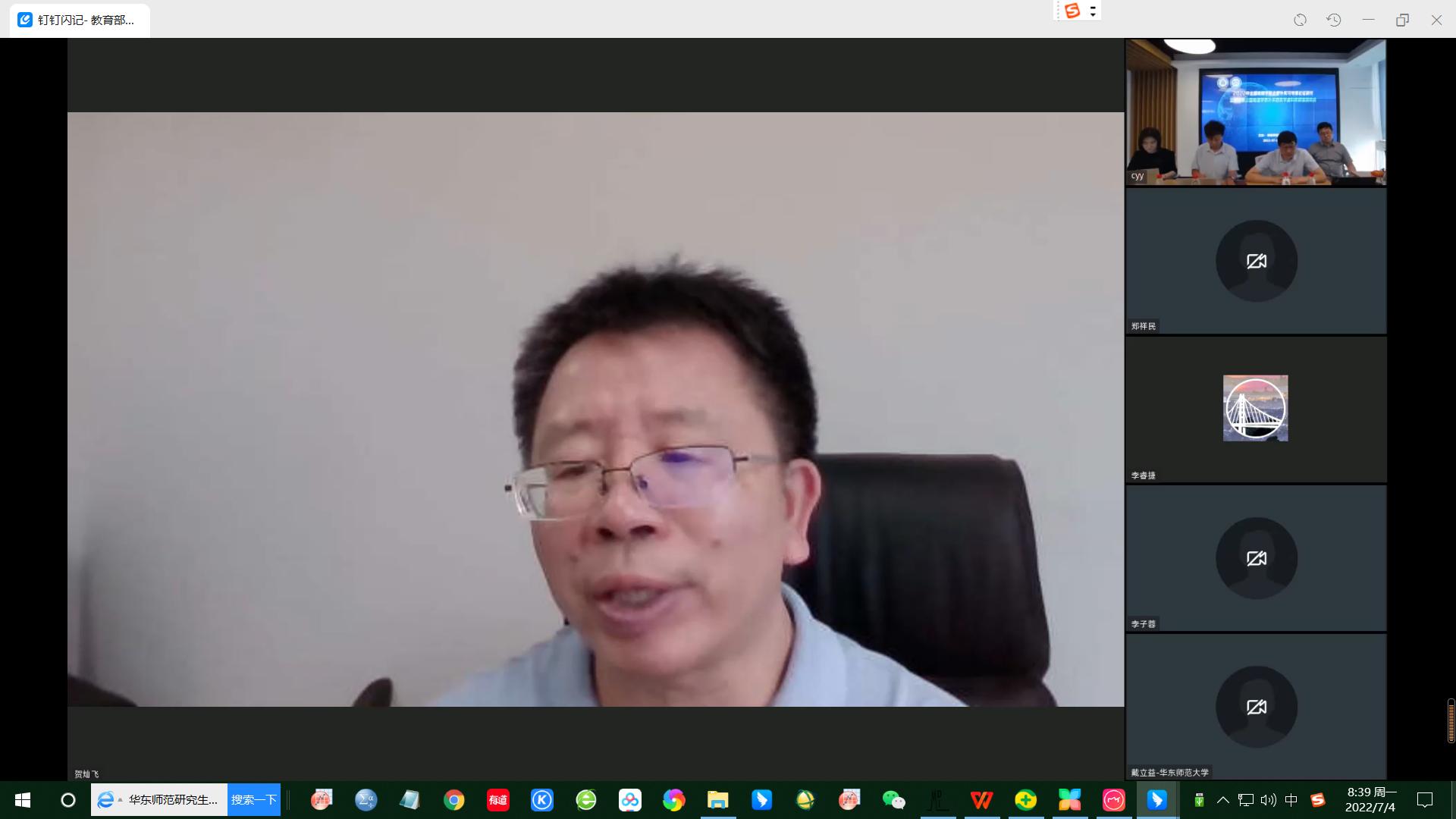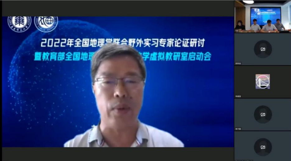 7月1日下午,由完美(中国)官方主办的2022年全国地理学联合野外实习专家论证研讨暨教育部全国地理学野外实践教学虚拟教研室启动会通过线上会议形式举行。教育部地理学教指委主任、北京大学城市与环境学院院长贺灿飞教授,教育部地理学原教指委副主任、西安石油大学原党委书记惠泱河教授,教育部地理学教指委委员、鲁东大学校长王庆教授,中国地质大学(武汉)副校长王华教授,完美网页版副校长戴立益教授,完美网页版教务处处长、招生办公室主任孟钟捷教授,全国大学生地理学野外实践教学联盟各理事单位的主管副校长、院长、党委书记和负责教师,教育部各地理学教指委委员,教育部特聘野外指导专家组成员及国内四十个高校单位的专家、教授和师生们共148人参加了会议。完美网页版地理科学学院院长刘敏教授和完美网页版地理科学学院郑祥民教授分别主持了教育部全国地理学野外实践教学虚拟教研室启动仪式和第十三届全国地理学联合实习线路论证及专家论证研讨环节。
