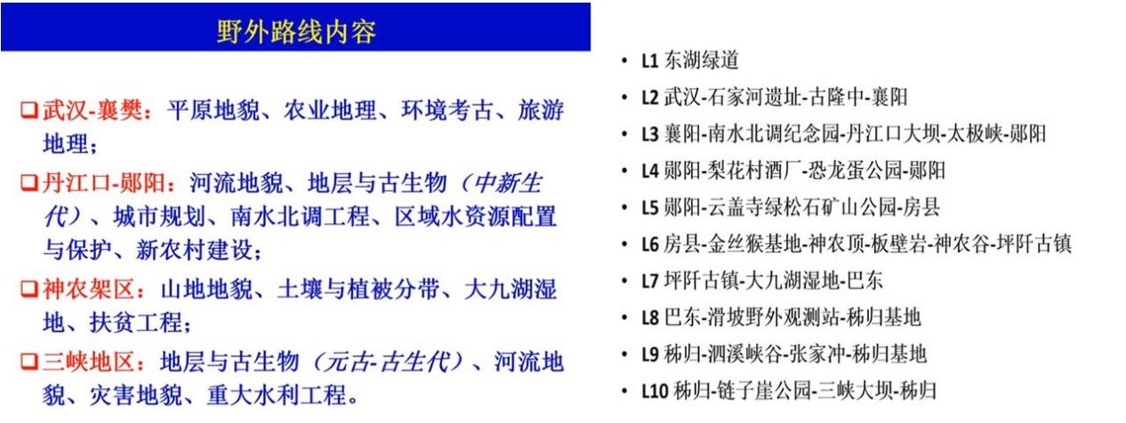 中国地质大学(武汉)李长安教授从实习路线、地区,实习点,野外路线的内容以及每日实习的行程等方面详细介绍了2022年全国地理院校野外联合实习内容。从实习性质来说,本次联合实习是地理学综合实习,包括地质、地貌、土壤、水文、生态、城乡规划、旅游地理、人文地理等;从实习主题来看,本次联合实习符合地理科学与国家需求,包括长江大保护、三峡工程、南水北调、国家公园、新型城镇化、精准扶贫等。