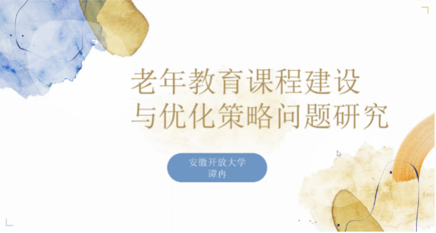 安徽老年远程教育研究团队研究人员谭冉则基于已经开展的调查研究,作了题为《老年教育课程设置与体系建设研究》的主题发言,结合老年教育课程的开设现状、需求以及实践过程中的困境,分析了有效促进老年教育课程建设的改进路径。