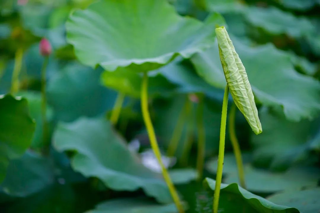 “叶上初阳干宿雨,水面清圆,一一风荷举”。碧叶肆意卷舒开合,那随着微风卷动着的是无尽的绿波。