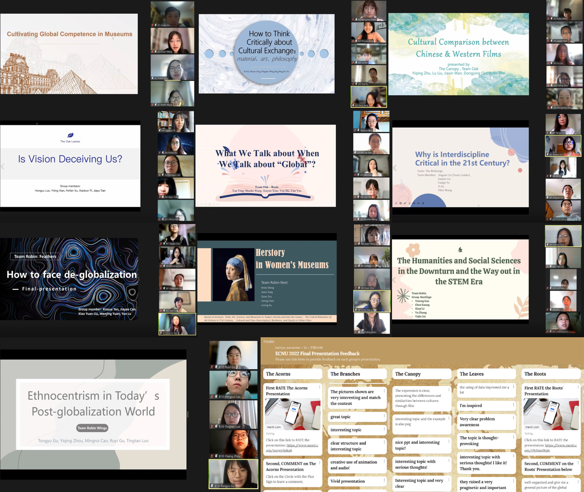 8月5日,项目结业展示举行。各组经过三周准备,以多样的视角对逆全球化问题、21世纪跨学科的重要性、如何批判性地思考文化交流等议题进行了思考与解读。每组的展示内容各有侧重,但都对所学课程进行了融会贯通,将学术思维、科学研究、全球胜任力等知识与方法融入其中。展示结束后,同学们从主题关联性、课程关联性、内容重要性三个维度进行打分,通过评论发表自己对各组汇报的看法,不同观点交汇碰撞,精彩的汇报获得了康大教师的高度评价。