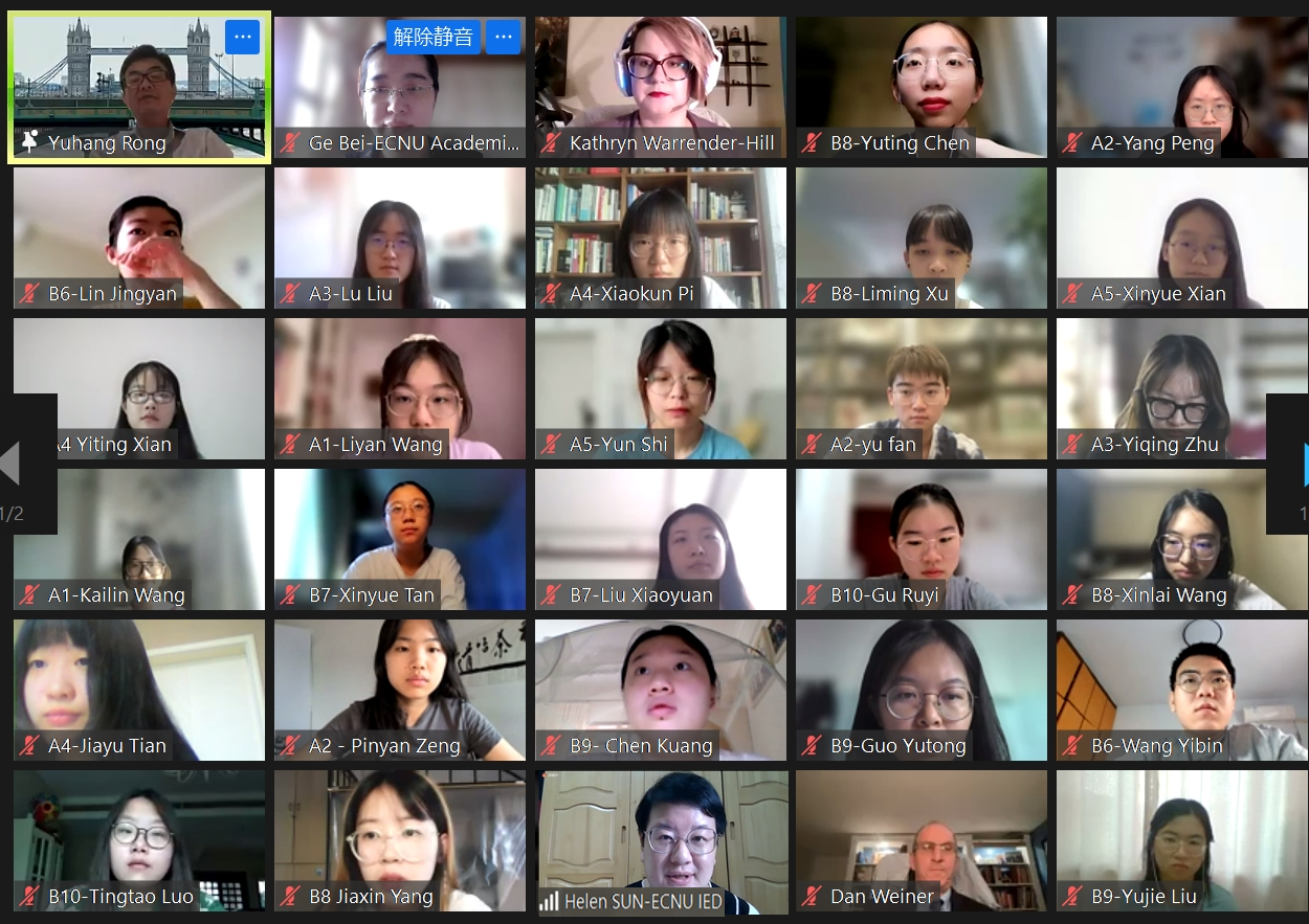 7月14日,项目入学指导会议召开,康涅狄格大学全球事务副校长Daniel Weiner、全球事务助理副校长Yuhang Rong(荣宇航)、项目负责人Kathryn Warrender-Hill、协调员Laura Labato,完美(中国)官方教务处、国际合作与交流处的相关老师及全体学员参会。会议介绍了课程设置、课前预习、过程性评价等内容,并带领同学们云游了美丽的康大校园。