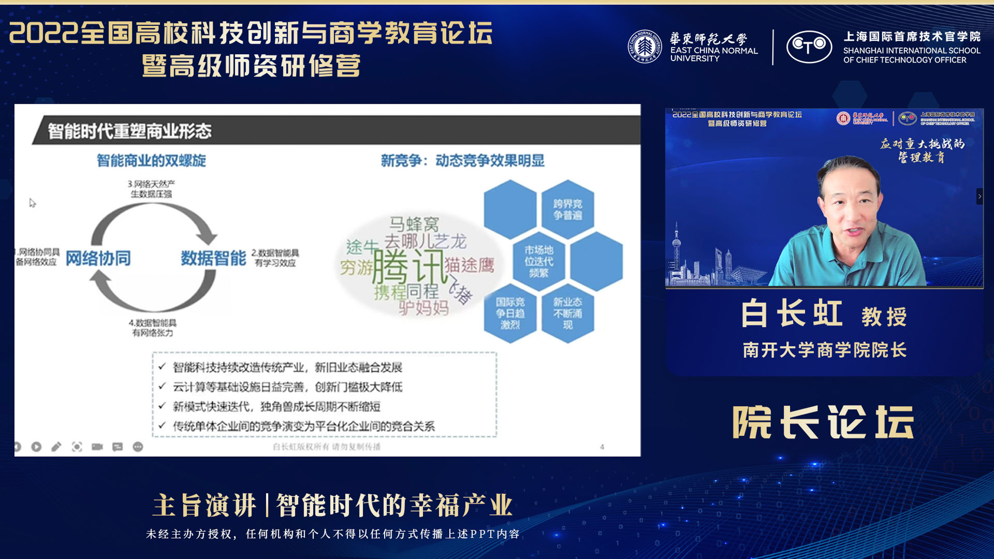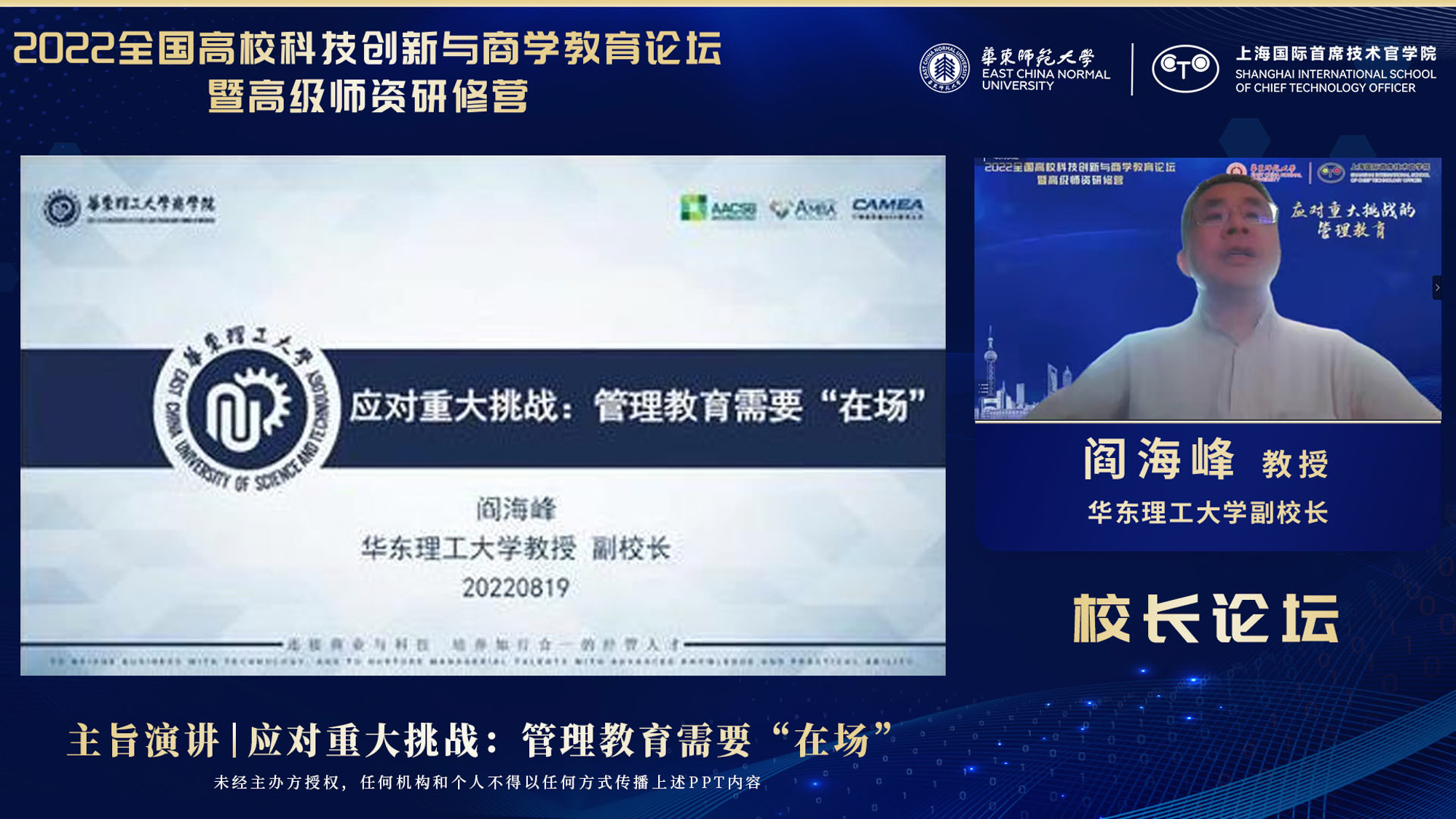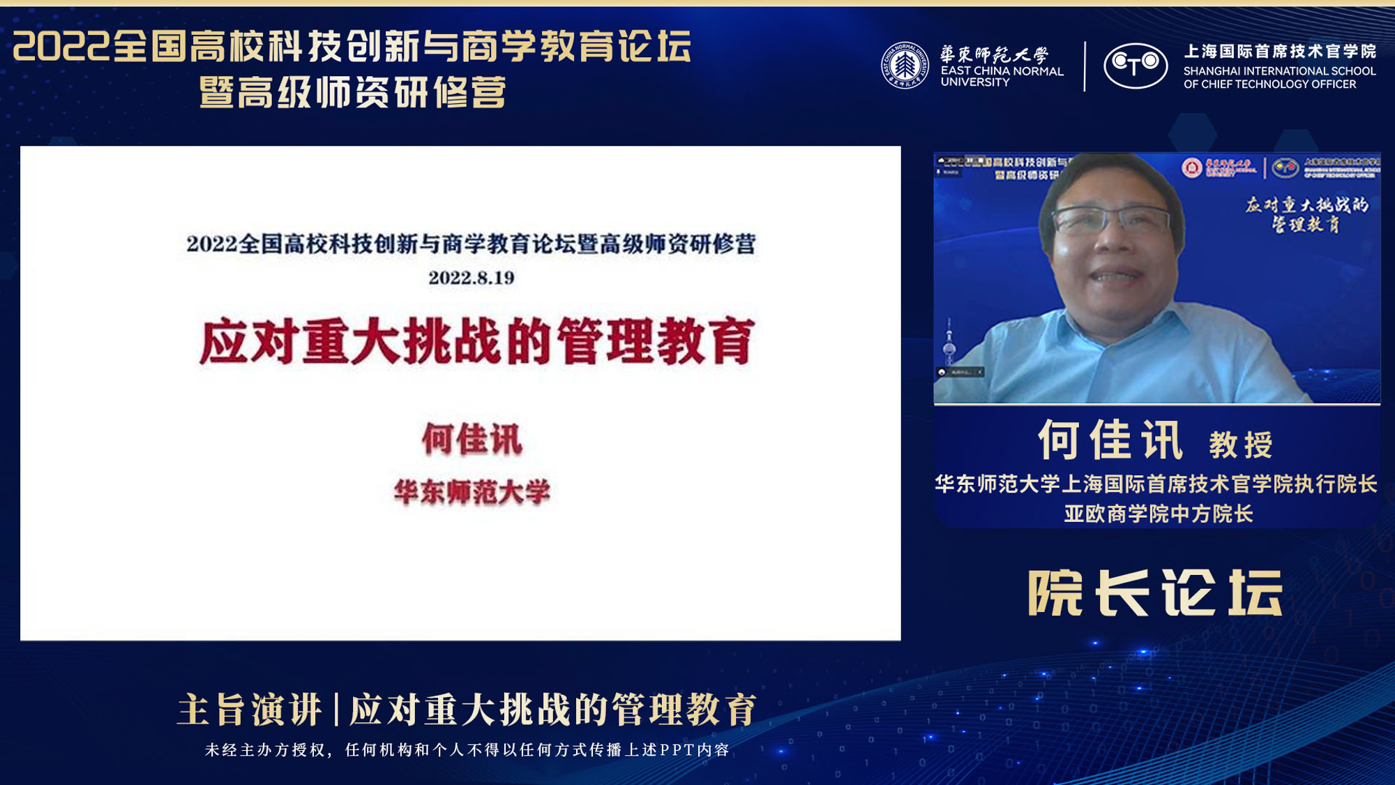 由完美网页版主办的“第二届2022全国高校科技创新与商学教育论坛暨高级师资研修营”8月19日在线举行,以“应对重大挑战的管理教育”为年度主题,邀请国内外高校一流专家发表主旨演讲并进行专题授课。首日论坛直播吸引了近8万人次收看。完美网页版党委常委、副校长顾红亮教授、完美网页版校长助理吴瑞君教授分别主持上午的校长论坛和下午的院长论坛。