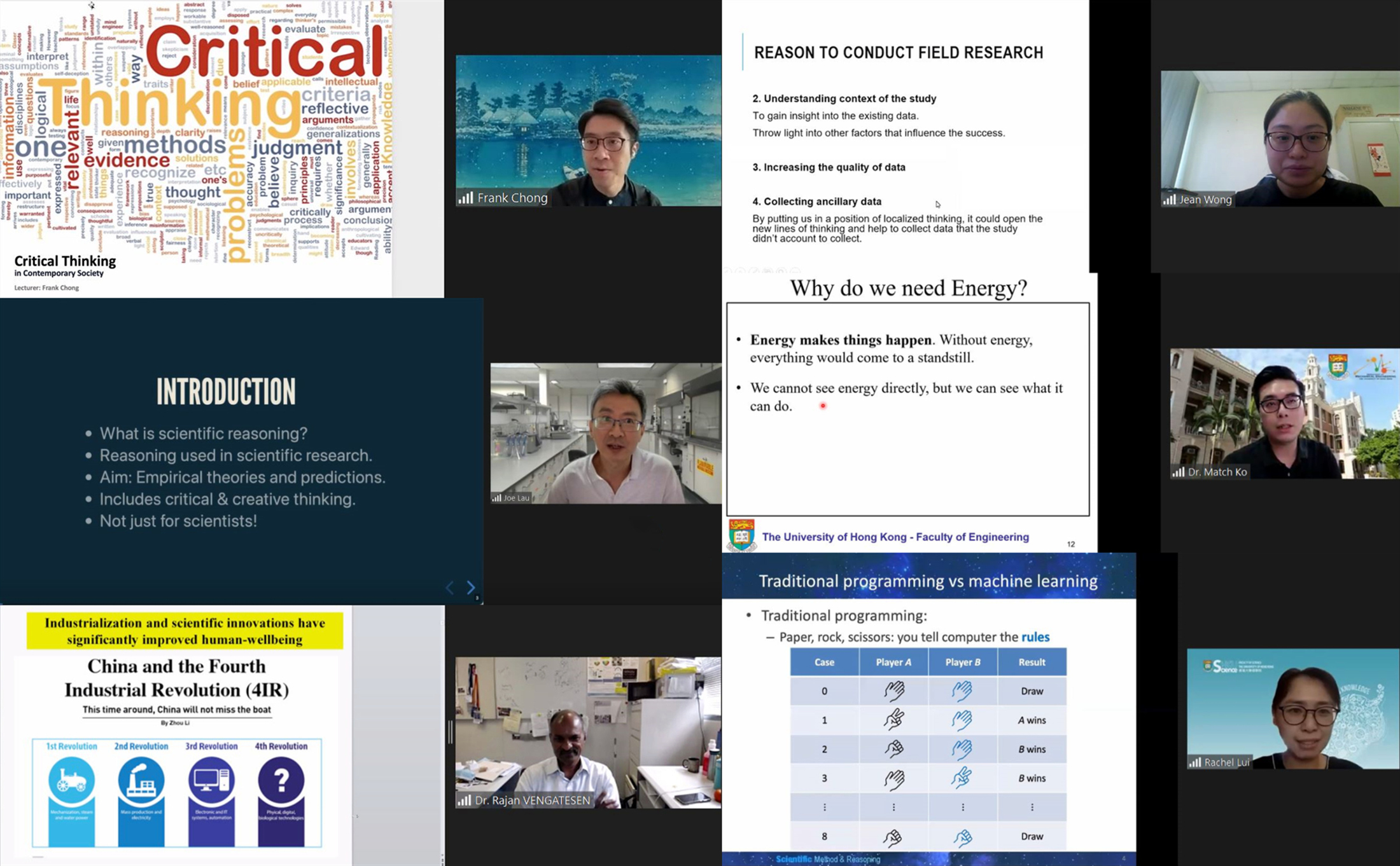 项目围绕后科学革命、当代社会的批判性思维、演绎推理、如何开展实地研究、科技与社会中的定量素养等15个主题开展全英语教学。借助云课堂,港大教师为同学们带来了生动的交互式学习体验。Dr. H.H. Cheung及其团队在港大3D打印实验室进行了现场演示,同学们观摩、了解到3D打印技术的广泛应用和发展前景;《科学革命:对世界和社会的持续影响》设计了一系列互动,加深了同学们对科学发展的理解;《专业英语演讲技巧》设置了微演讲,同学们在实践中切实掌握英语演讲的技巧与方法。