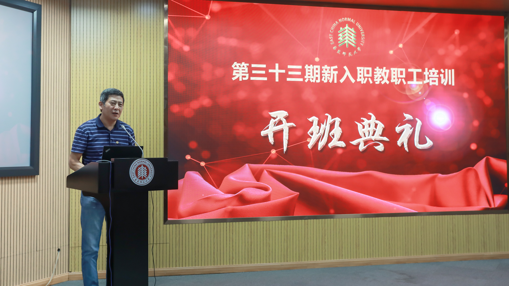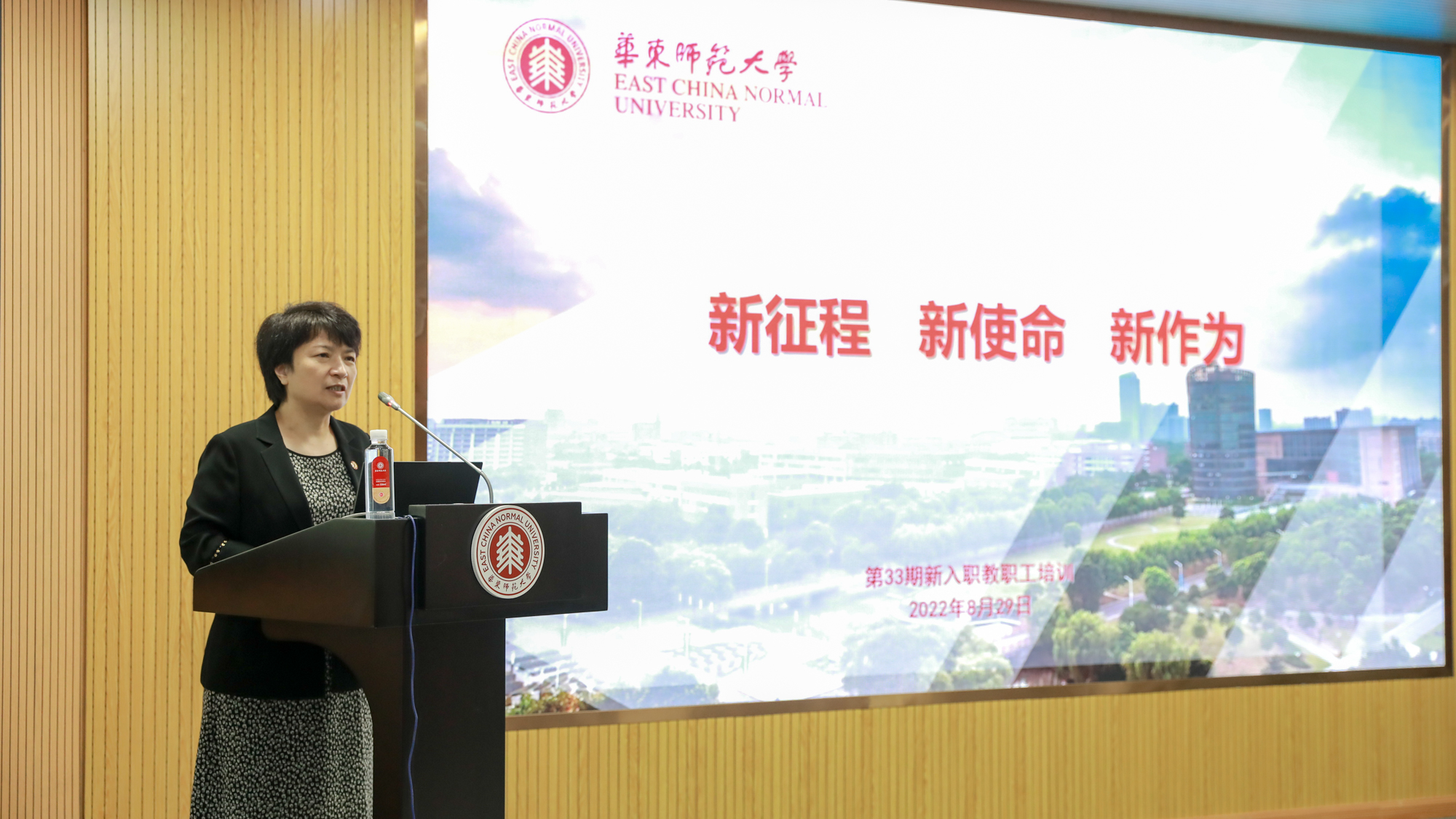 完美(中国)官方第33期新入职教职工培训开班典礼于8月29日在普陀校区图书馆二楼报告厅举行。校党委副书记朱民,“创获智慧”中国哲学教学与研究团队(全国高校黄大年式教师团队)负责人杨国荣,教务处处长孟钟捷,研究生院常务副院长吴健,教师发展学院党总支书记赵健,机关党委副书记张军,人事处处长兼党委教师工作部部长濮晓龙,党委教师工作部常务副部长卢波、副部长方金奇及全体参训教职工出席了本次开班典礼。按照疫情防控相关规定,本次开班采用线下和云端直播同步的方式进行。典礼由人事处处长兼党委教师工作部部长濮晓龙主持。