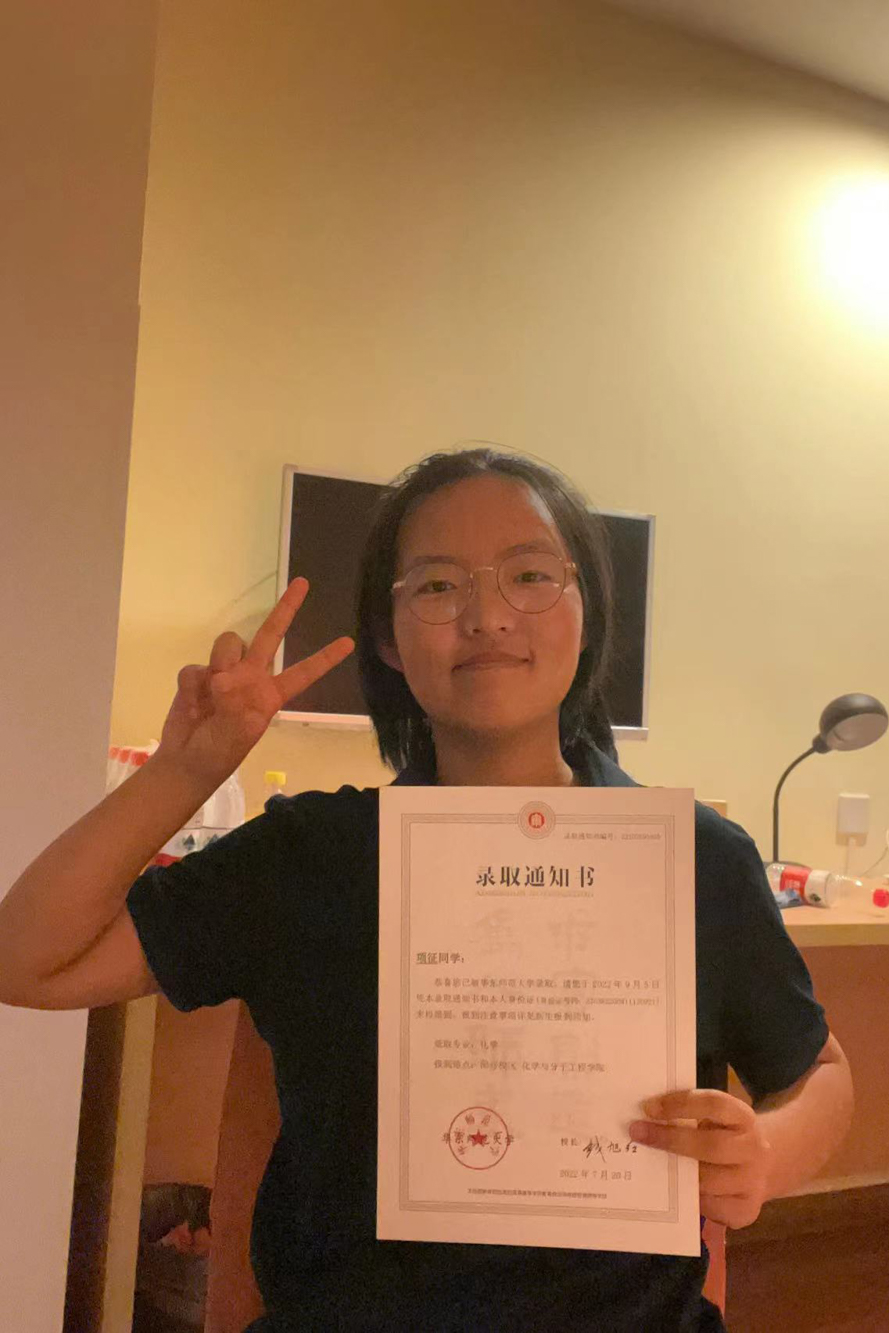 拿到录取通知书之后很激动,也很开心。特别期待大学期间可以学更多的知识,在各个方面提升自己的能力。