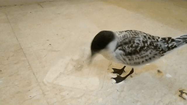 伍若熙印象最深刻的是在老师的协助下他们救助了一只粉红燕鸥的亚成体。8月22日在东山岛,他们发现这只小鸟的时候,它在车水马龙的南门湾的晚风中耷拉着脑袋、瑟瑟发抖,旁边有流浪狗虎视眈眈。鸟类学专家斯幸峰老师给它进行了初步检查,未发现明显的外伤。他们将小燕鸥带回旅店悉心喂养了两天。