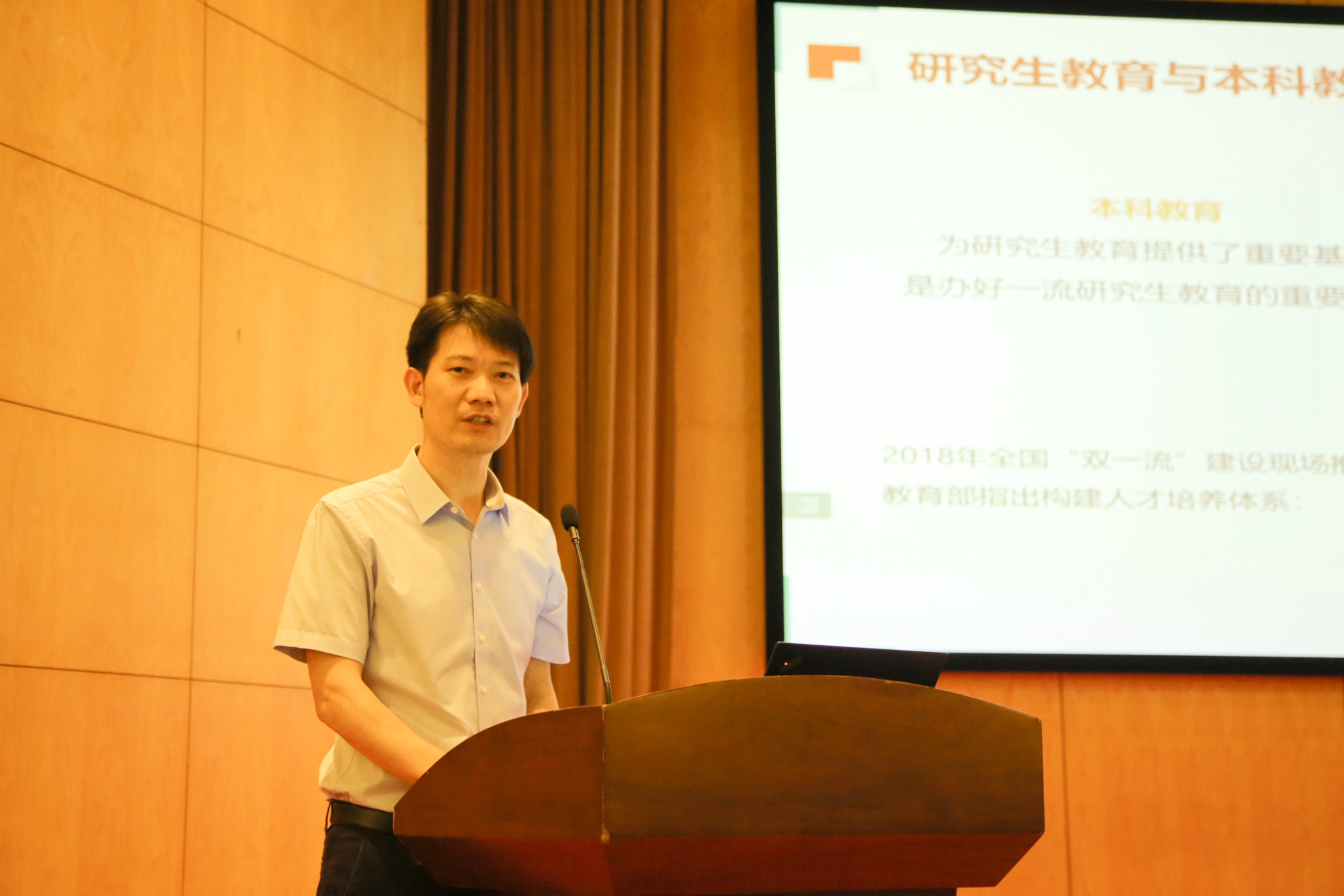 吴健分析了我校研究生教育的一些现状与问题,介绍了今后工作的四大举措,他表示研究生教育要以人才培养成效为核心,以国家战略和社会急需为导向,动态调整学科点结构,优化招生计划配置,建设高水平导师队伍,提升培养质量和就业质量。