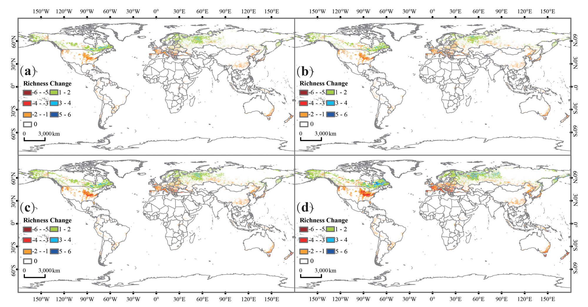 和现代相比,未来气候情景下泥炭藓物种丰富度变化