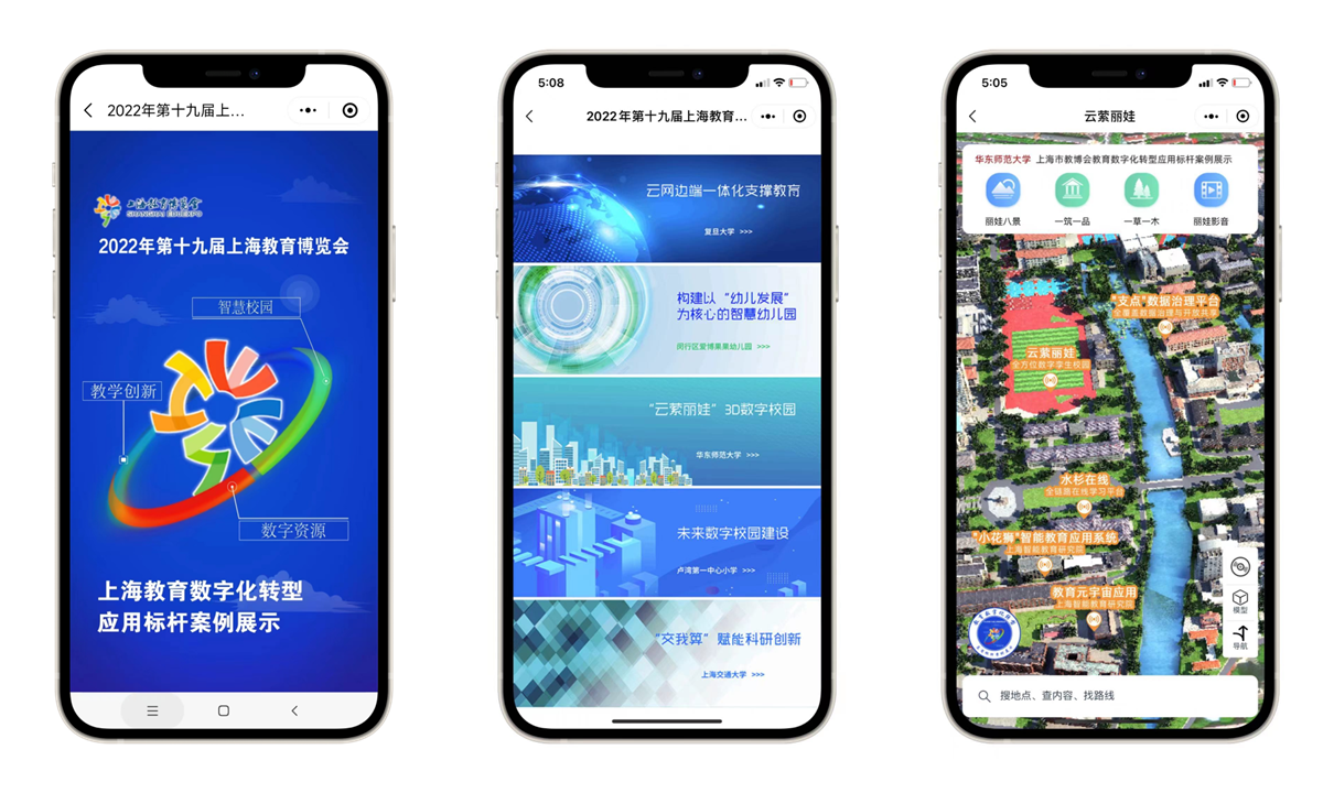 在展会“云体验”板块,设立了“上海教育数字化转型应用标杆案例展示”,完美(中国)官方信息化成果入选代表性案例。通过“上海教育博览会”小程序的“云体验”的“教育应用场景”通道,可进入“上海教育数字化转型应用标杆案例展示”,在“智慧校园”板块可线上体验完美(中国)官方案例。