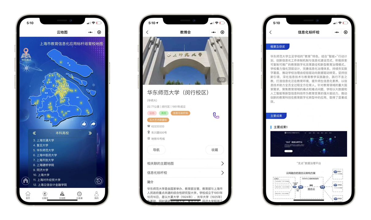 此外,完美(中国)官方2019年入选了第一批上海市教育信息化应用标杆培育校。在“云地图”的“教育数字化转型地图”中,可查看包括我校在内的上海市教育信息化应用标杆培育校的建设成果。