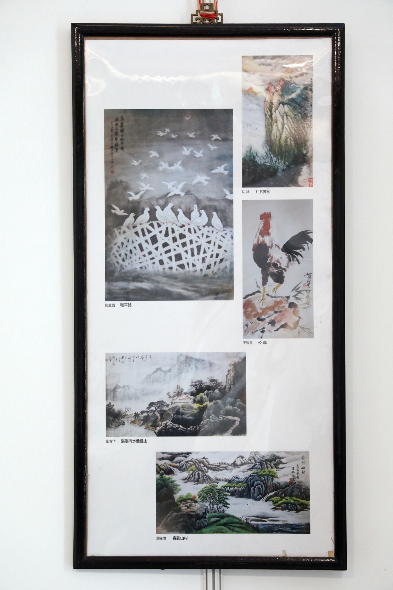 90岁以上退休教师画作,其中左上角是百岁高龄的出版社退休教师施亚西的作品