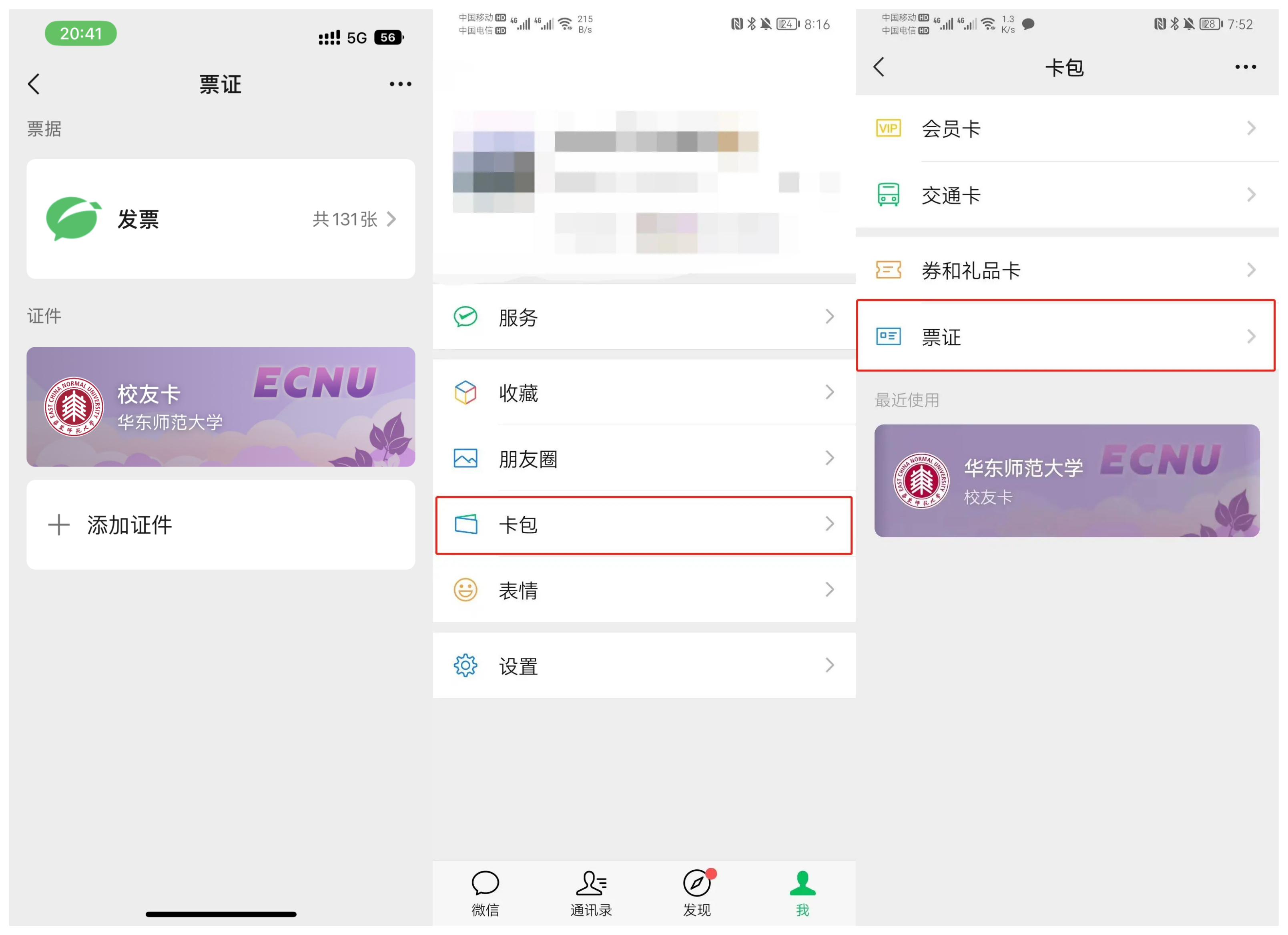 ✦打开微信-点击“我”-打开“卡包”-打开“票证”