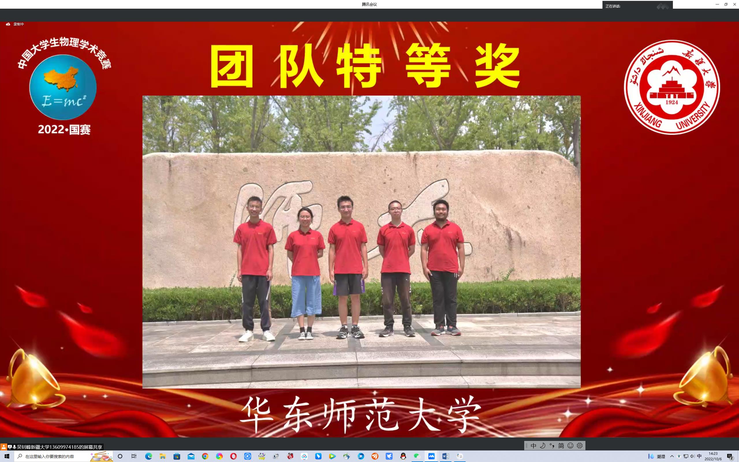 在一年的科研训练中,队员们在文献调研、实验搭建、理论模拟、演讲汇报及沟通交流方面迅速成长,也收获了深厚的友谊,在比赛中充分展现出团队凝聚力及师大学子的自信风范。