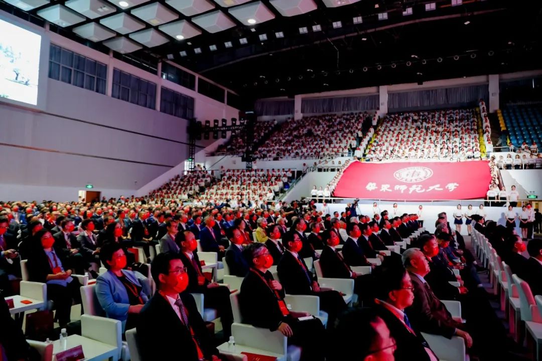 校党委书记梅兵主持大会,讲述激励师生前行的“大思政课”。校长钱旭红以“求实成就卓越,教育创造未来”为题致辞。大会设置了手语同传,同步以背景展示甲骨文和小篆,体现师大爱的温度和文化的厚度。