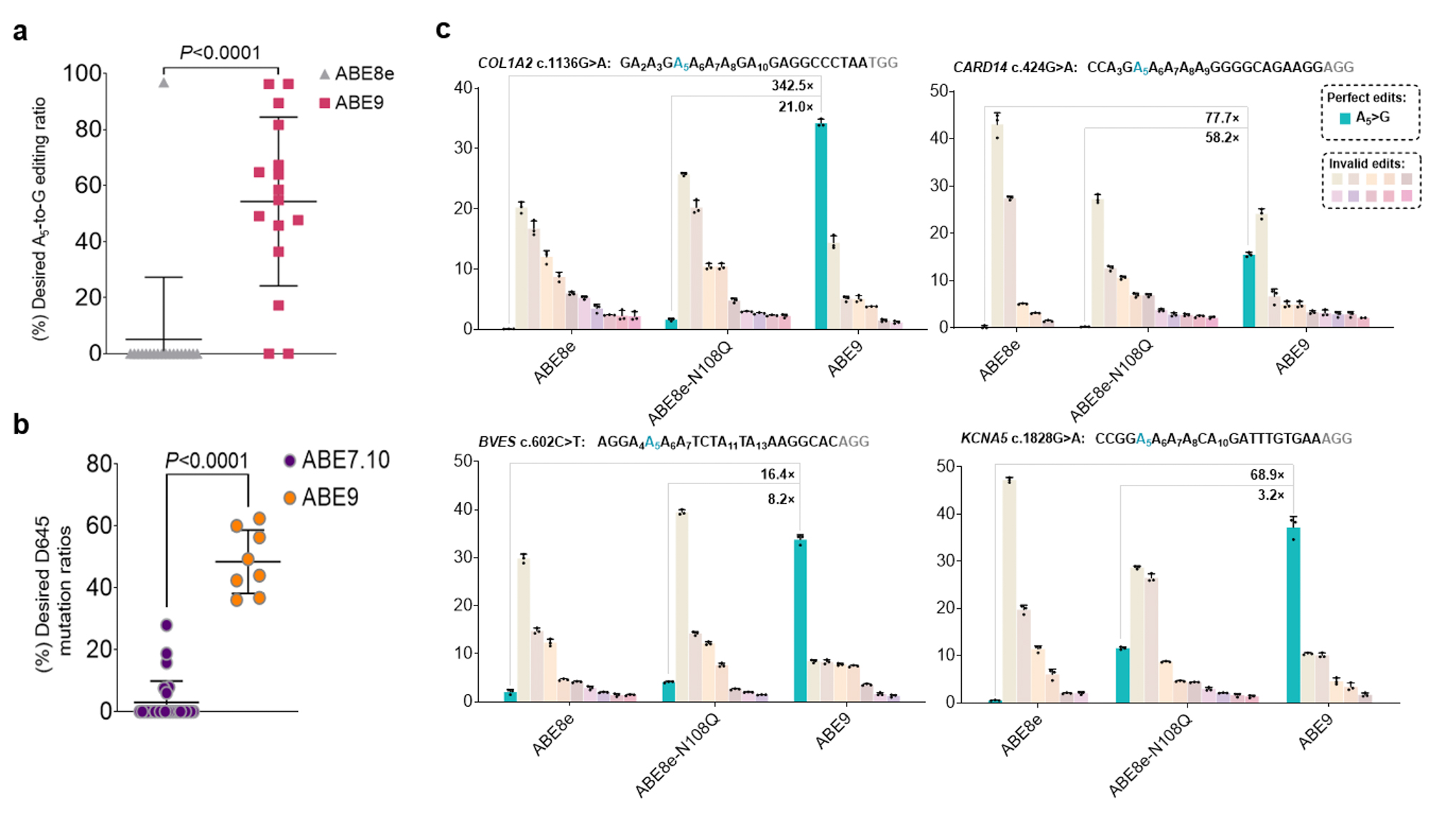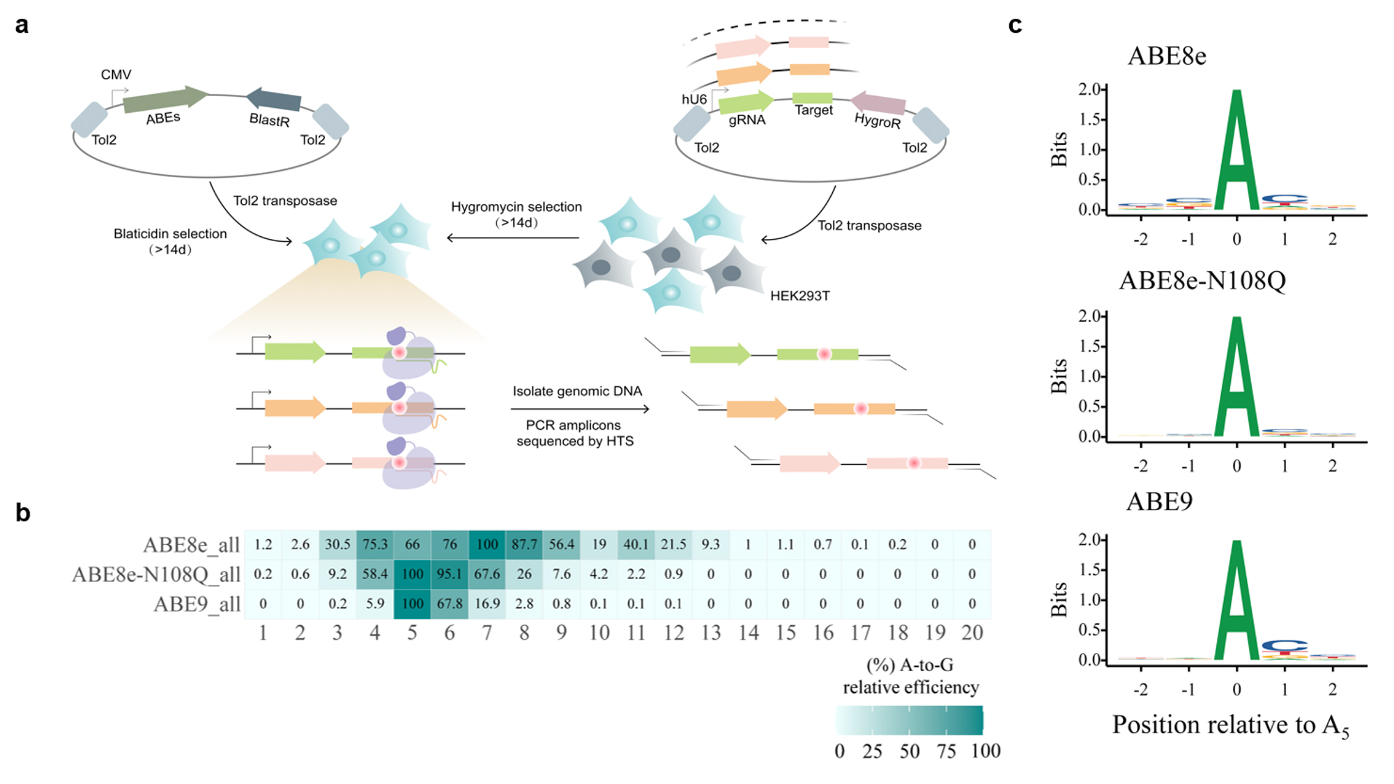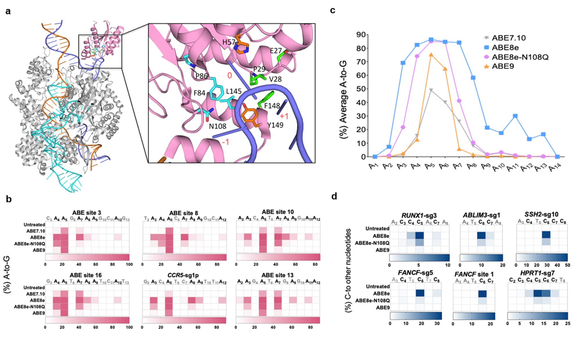 图1:TadA-8e蛋白结构及ABE9编辑特性评价