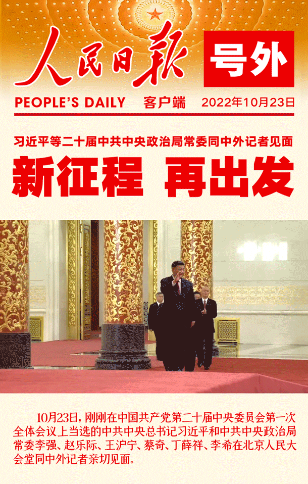 刚才,我们召开中共二十届一中全会,选举产生新一届中央领导机构,选举我继续担任中共中央总书记。现在,我向大家介绍其他6位常委同事:李强同志、赵乐际同志、王沪宁同志、蔡奇同志、丁薛祥同志、李希同志。