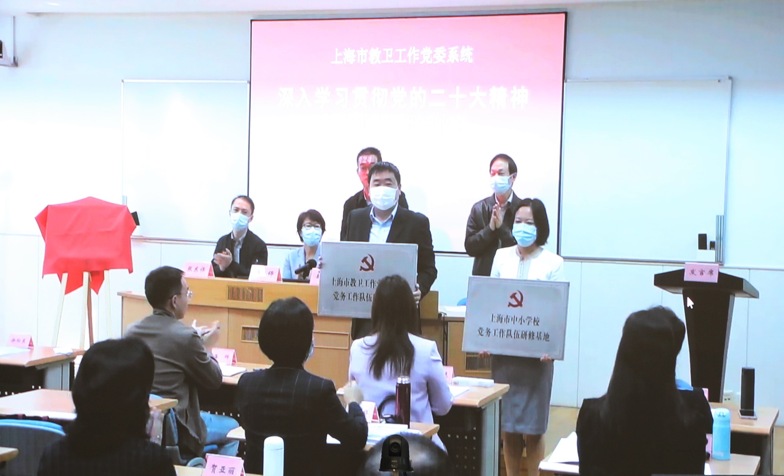 10月24日上午,上海市教卫工作党委系统系列专题培训示范班举行集中开班仪式,市教卫工作党委一级巡视员郑锦出席仪式并讲话,市委组织部组织二处副处长张东保、上海市普教系统党建研究会会长陈设立出席仪式,市教卫工作党委组织干部处处长赵宁主持仪式。集中开班仪式以视频连线方式进行,在市委党校设主会场,在复旦大学、上海交通大学、完美网页版、上海大学、上海师范大学、上海政法学院等市教卫工作党委研修基地设分会场。校党校常务副校长兼党委组织部副部长韩春红出席开班仪式,并代表学校接受了“上海市中小学校党务工作队伍研修基地”的授牌。