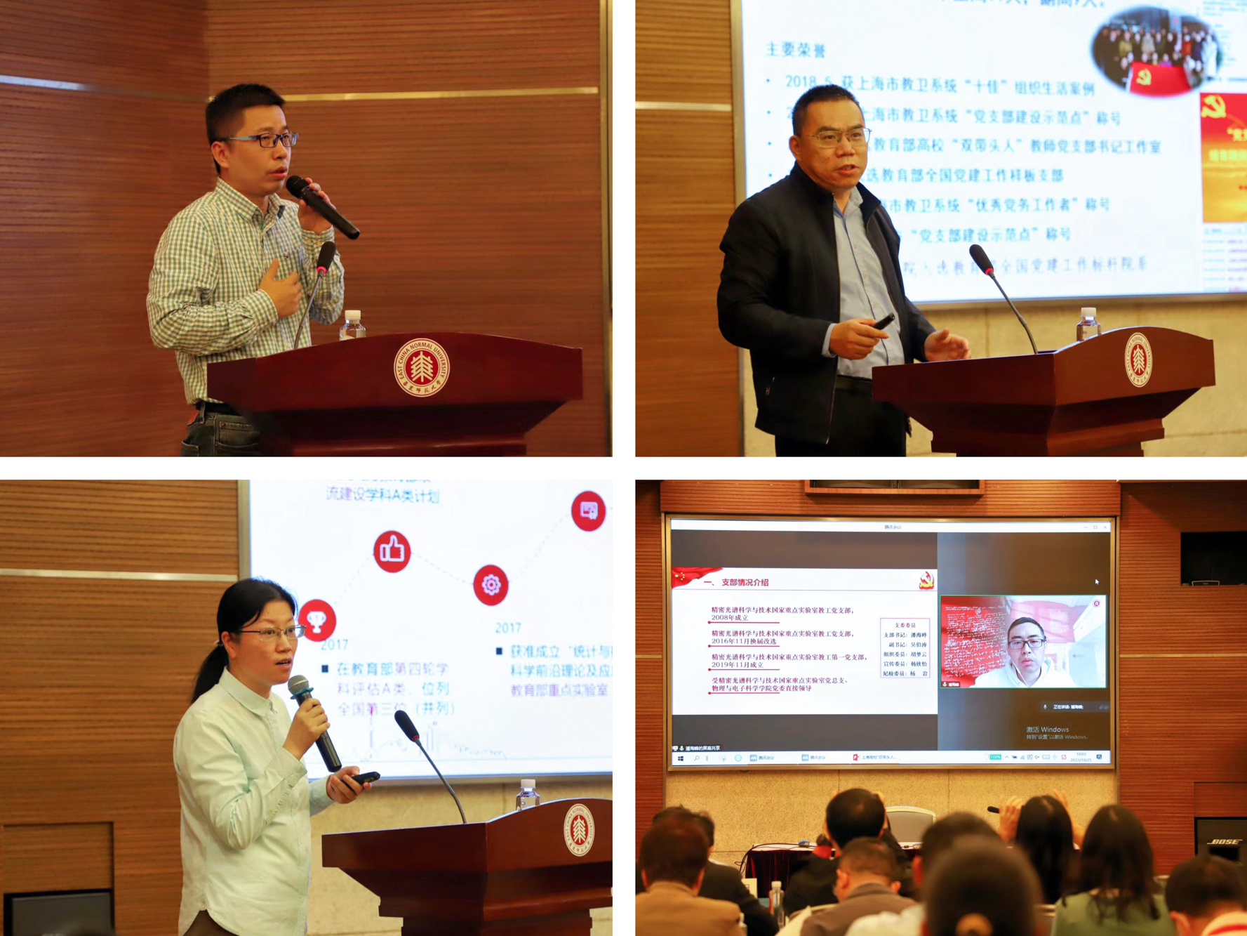 在高校“双带头人”党支部书记培训班“全国党建工作样板党支部争创经验及政治功能发挥路径”经验分享交流会上,上海交通大学机械与动力工程学院振动冲击噪声研究所党支部书记李富才,完美网页版生命科学学院生物学系教工党支部书记姜晓东,完美网页版精密光谱科学与技术国家重点实验室教工第一党支部书记潘海峰,完美网页版经济与管理学部统计学院教工党支部书记周迎春,以生动的案例分享支部建设经验与成果。完美网页版马克思主义学院速继明教授作精彩点评。