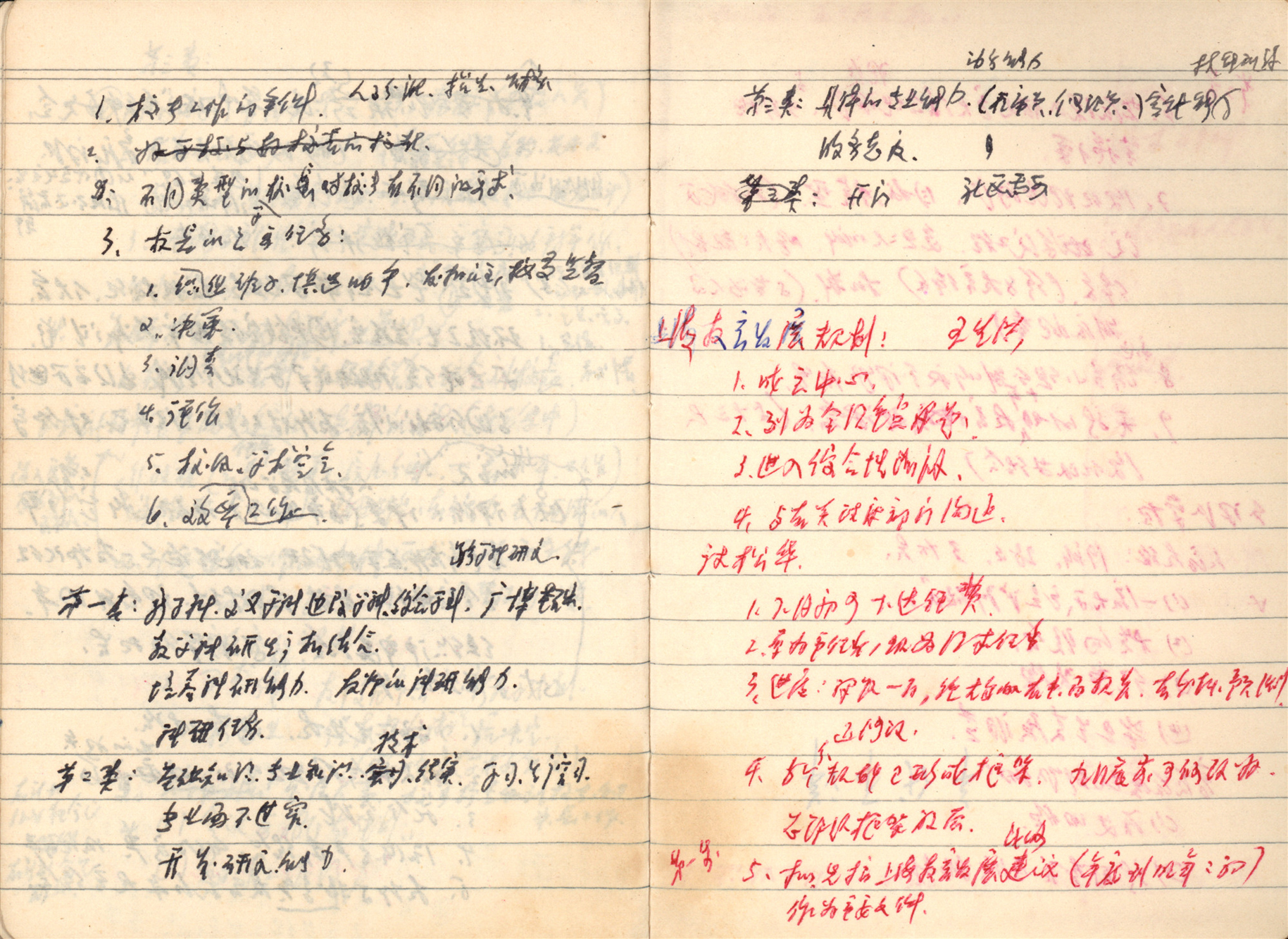 而笔记则记录了个人工作与学习的要点,现身为会议记录、灵感随录、听课记录、读书札记等形式,这些片段性的专题记录或者灵光性思考的要点标记,都表现出类似日记的功能,在手稿作者的人生旅途中留下了点点足迹。