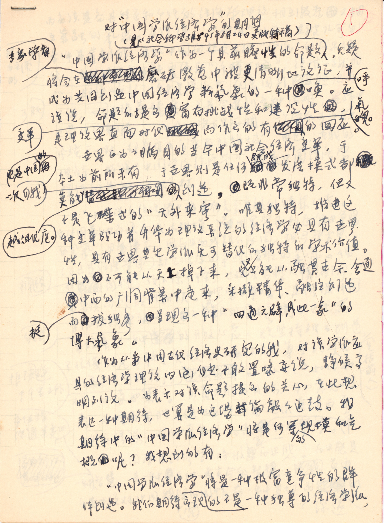 谢天佑《秦汉经济政策与经济思想史稿》底稿
