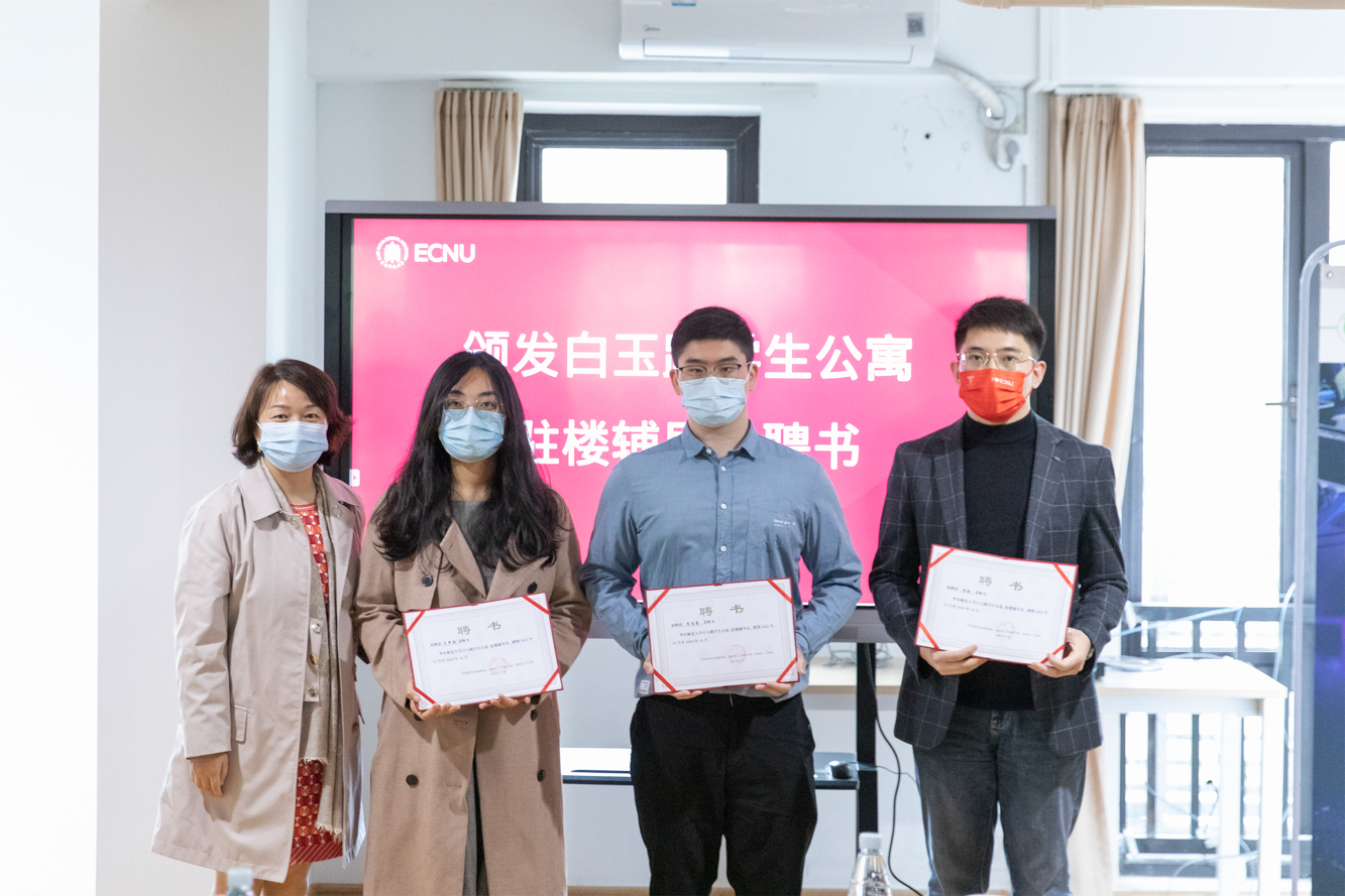 会上,聘请了高校文保分局沪西所、普陀区消防救援支队和后勤保障部有关同志为白玉路学生公寓社区辅导员;聘请教育学部、化学与分子工程学院、经济与管理学部与心理与认知科学学院的四位老师为白玉路学生公寓驻楼辅导员。