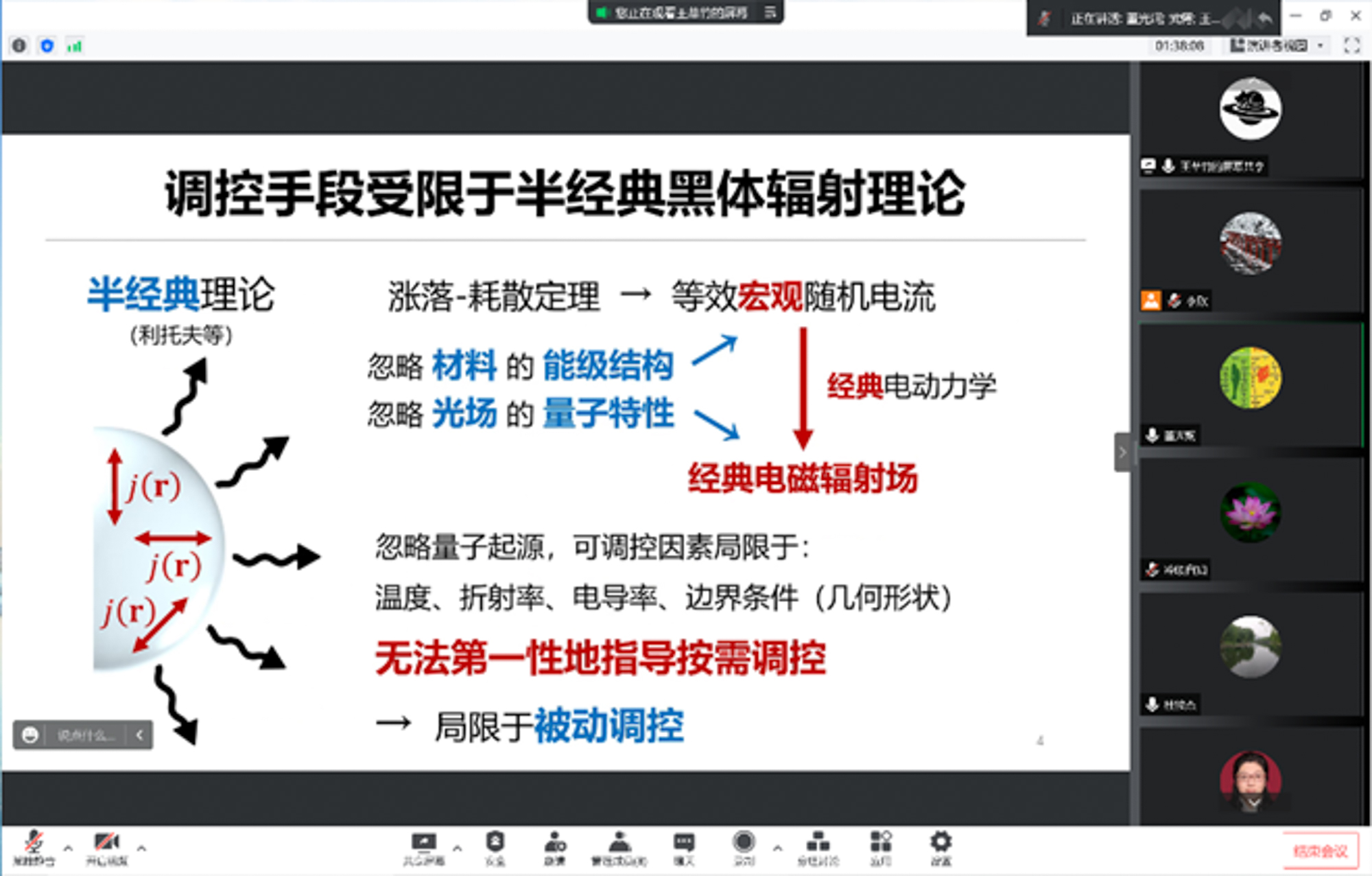 王莘竹在导师指导下把朗道、金兹堡、利托夫等物理大家发展的半经典黑体辐射理论从电中性材料拓展到带电材料,通过大量阅读凝聚态物理相关文献,搞清楚了材料的能级结构和带电材料的辐射有关,并调研了黑体辐射的应用研究,发现现有的黑体辐射调控方式是被动的,因此提出了黑体辐射主动量子调控的科学猜想。