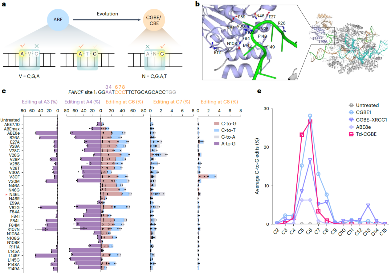 图1:TadA-8e蛋白结构及Td-CGBE特性评价