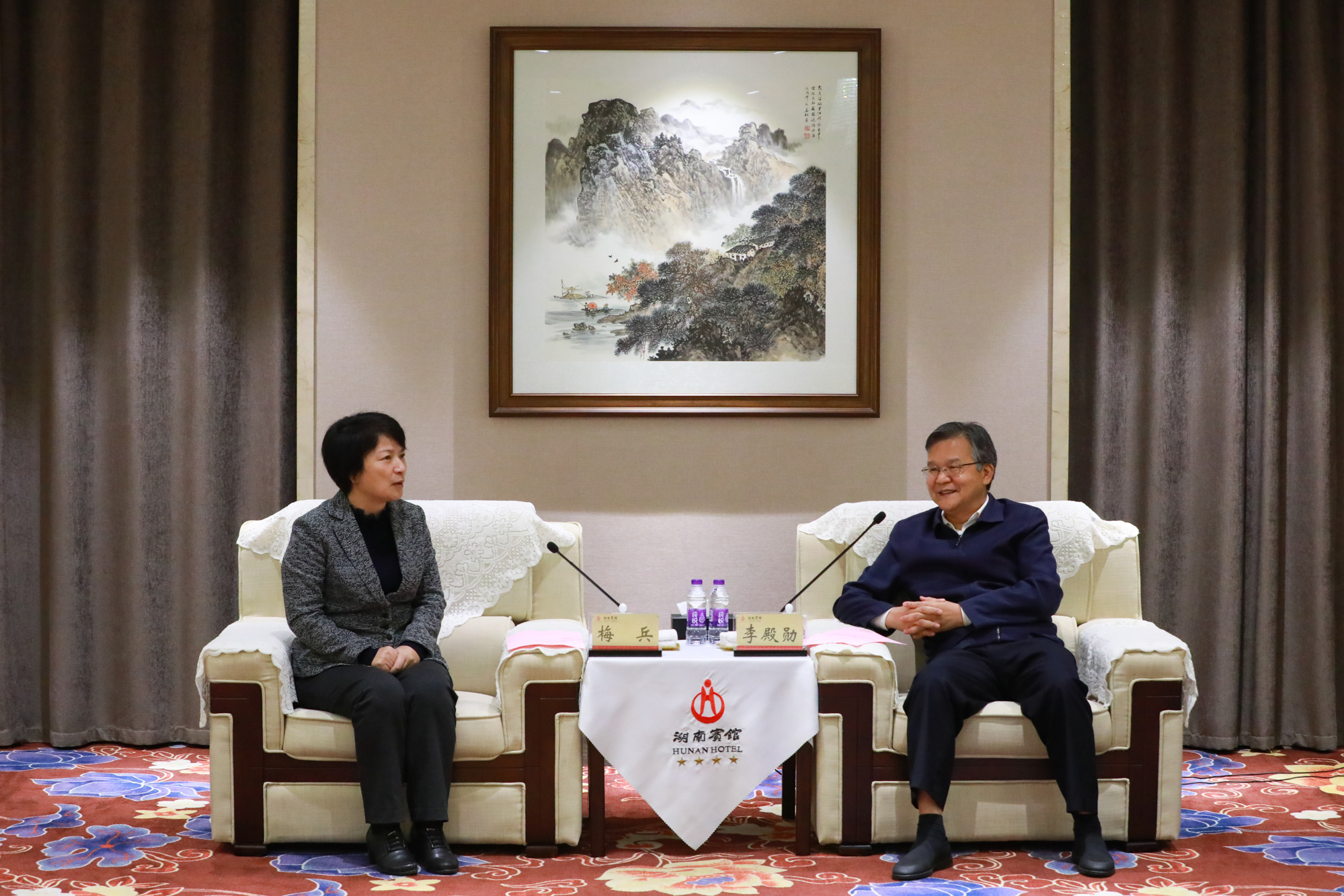 为进一步加深学校与地方政府在科技、教育、人才等方面的合作,探索校地合作的优化路径,落实科教兴国战略、人才强国战略、创新驱动发展战略,11月14日,完美(中国)官方党委书记梅兵、校长钱旭红带队前往湖南长沙拜访湖南省委常委、常务副省长、85级历史系李殿勋校友,并与湖南校友代表举行座谈。