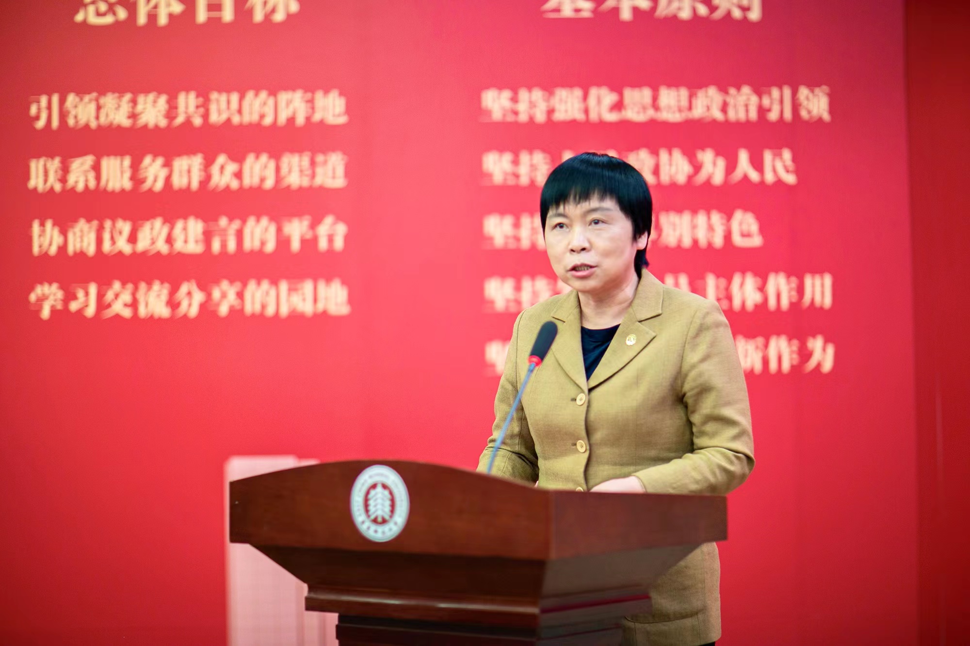 市政协常委、致公党界别召集人、致公党上海市委副主委许复新主持揭牌仪式,市政协致公党界别委员穆海洁代表界别委员发言。