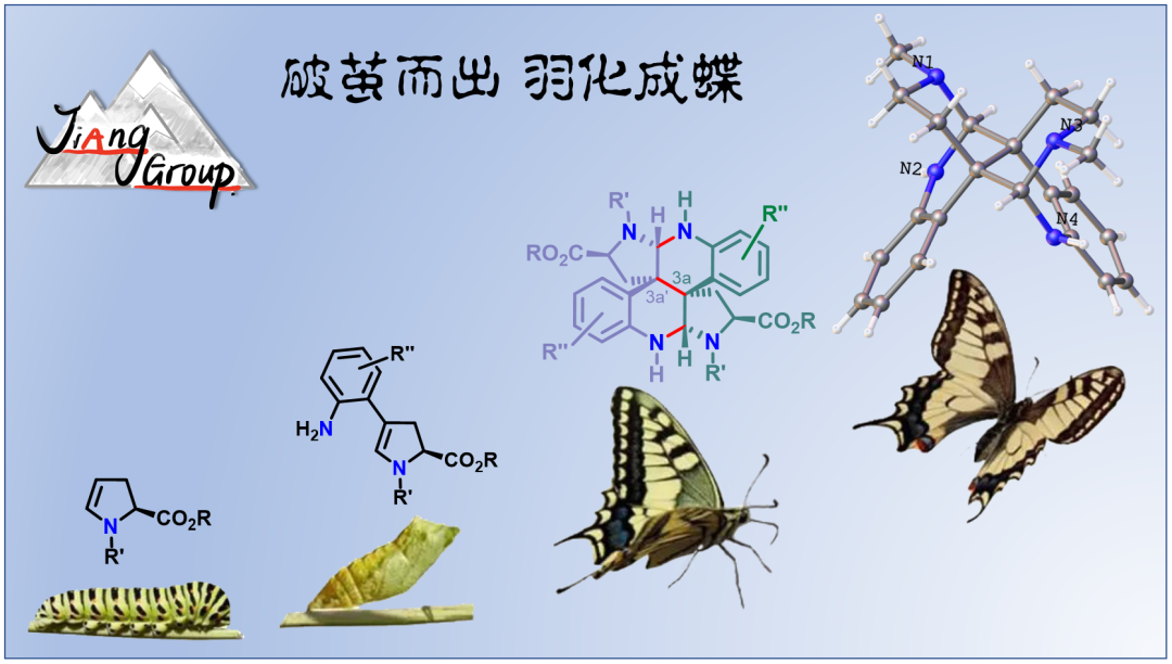 从平凡无奇还略显简陋的“蚕蛹”苯胺-烯胺二氮单体,到高张力、多手性、四级碳如“蝴蝶”一样美丽的四氮二聚体
