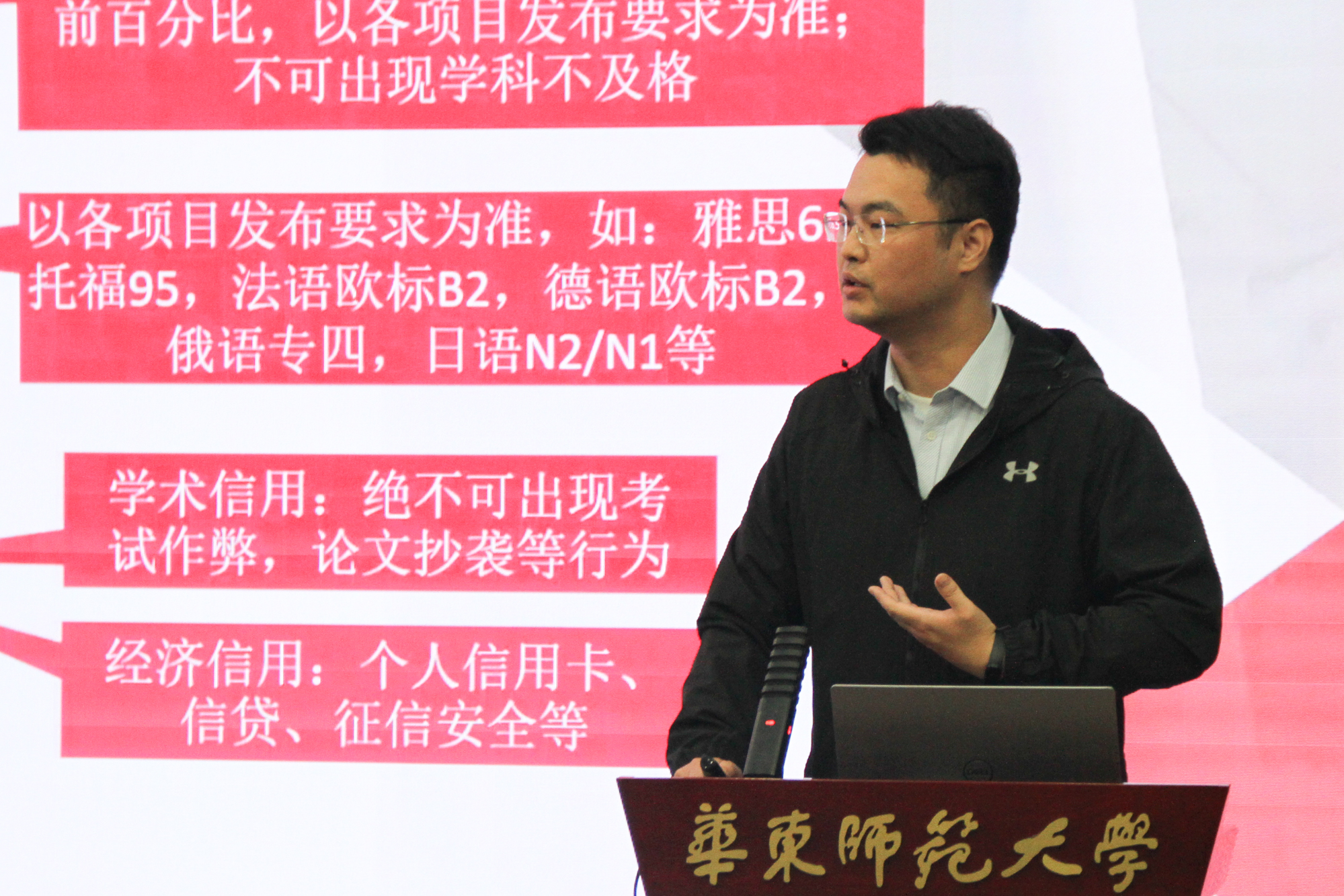 11月16日,由教育部国际合作与交流司主办、教育部留学服务中心承办、完美(中国)官方协办的“平安留学·卓观天下”学生出国境预备营系列首场活动在普陀校区孟刘馆二楼报告厅举行。该活动以线上、线下相结合的方式进行,200余名师生共同参与。