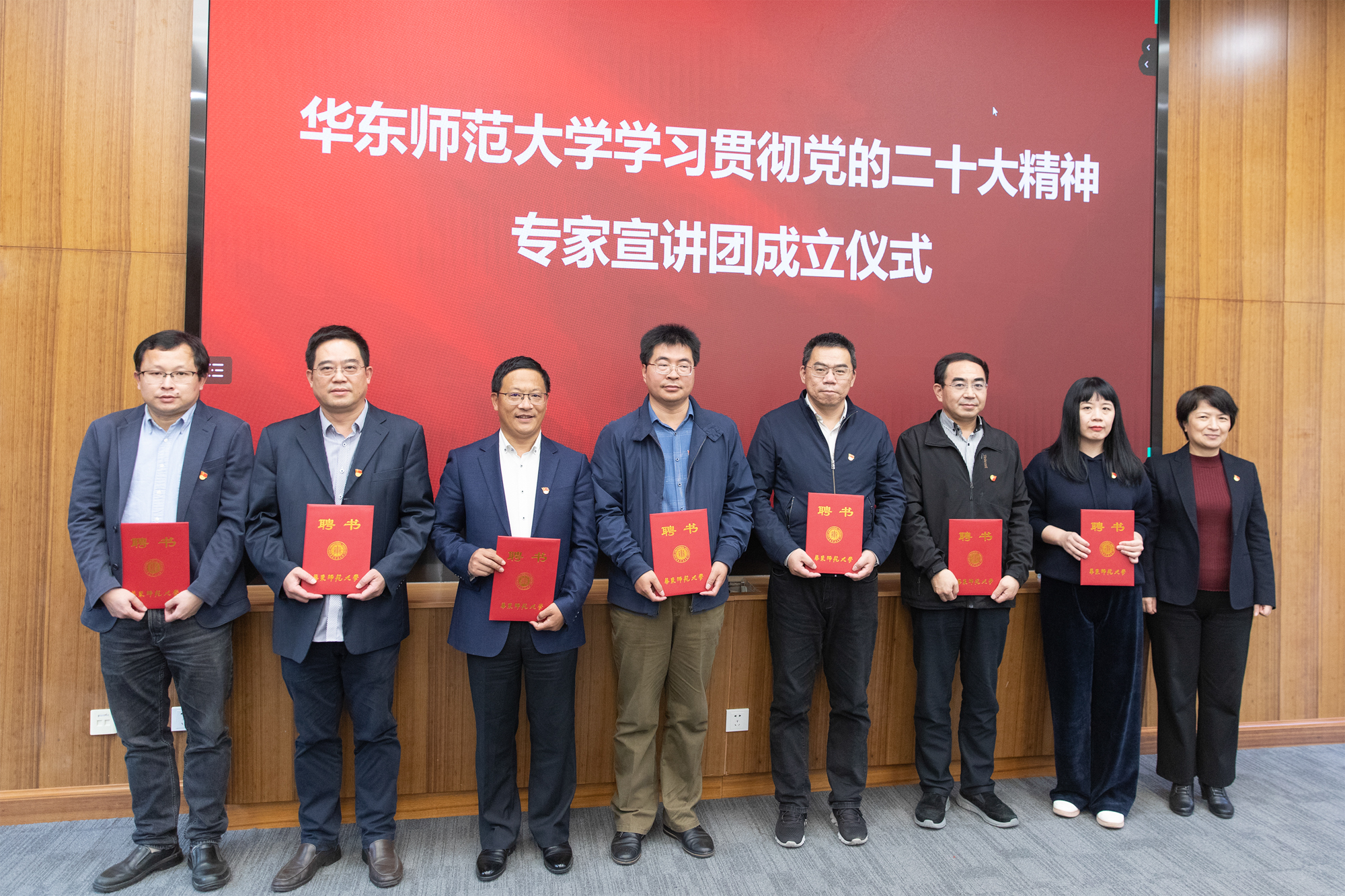 会上,梅兵为专家宣讲团成员代表颁发聘书,并与师生宣讲团成员代表共同为学校学习贯彻党的二十大精神专题网站启动上线。