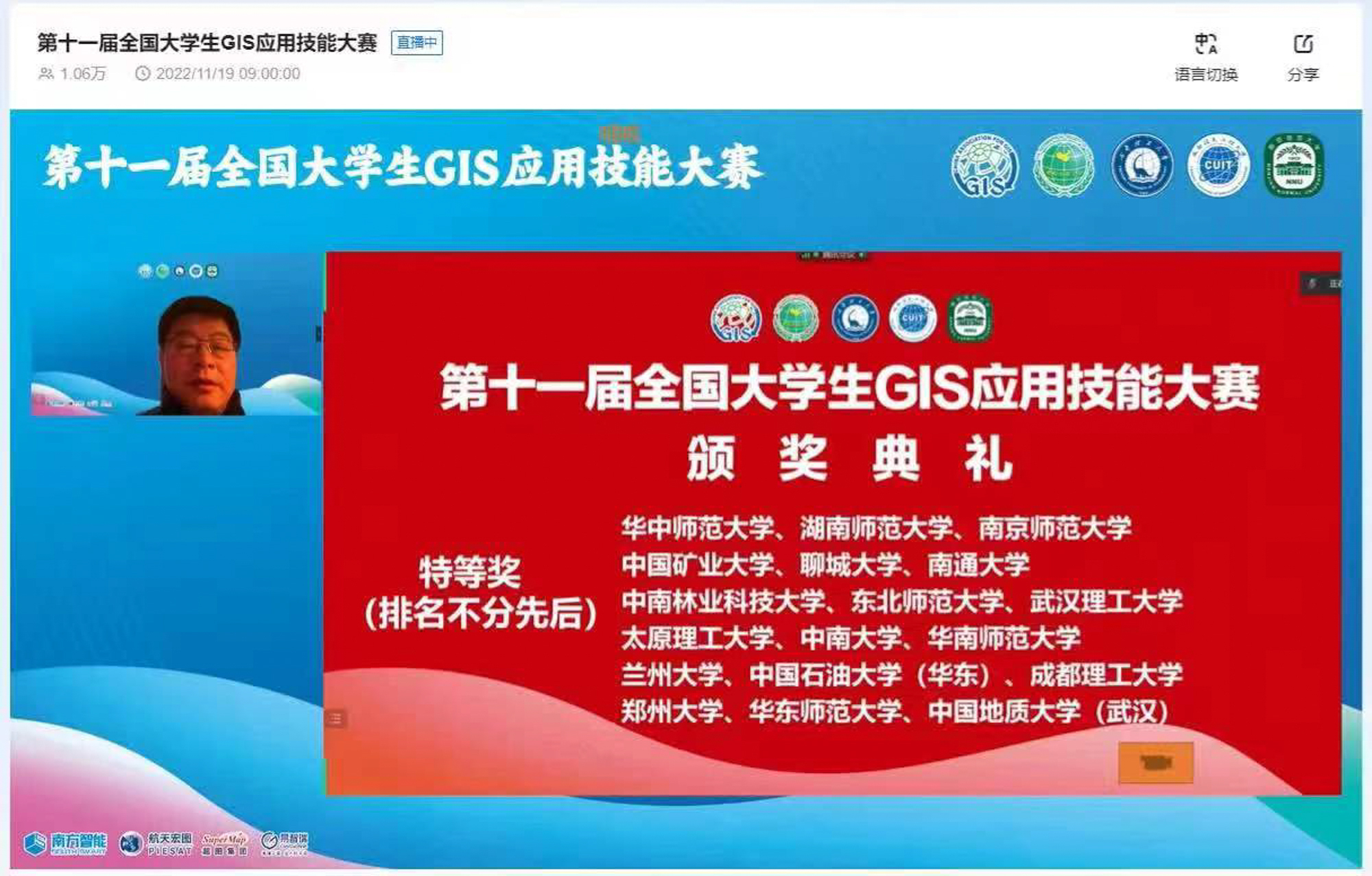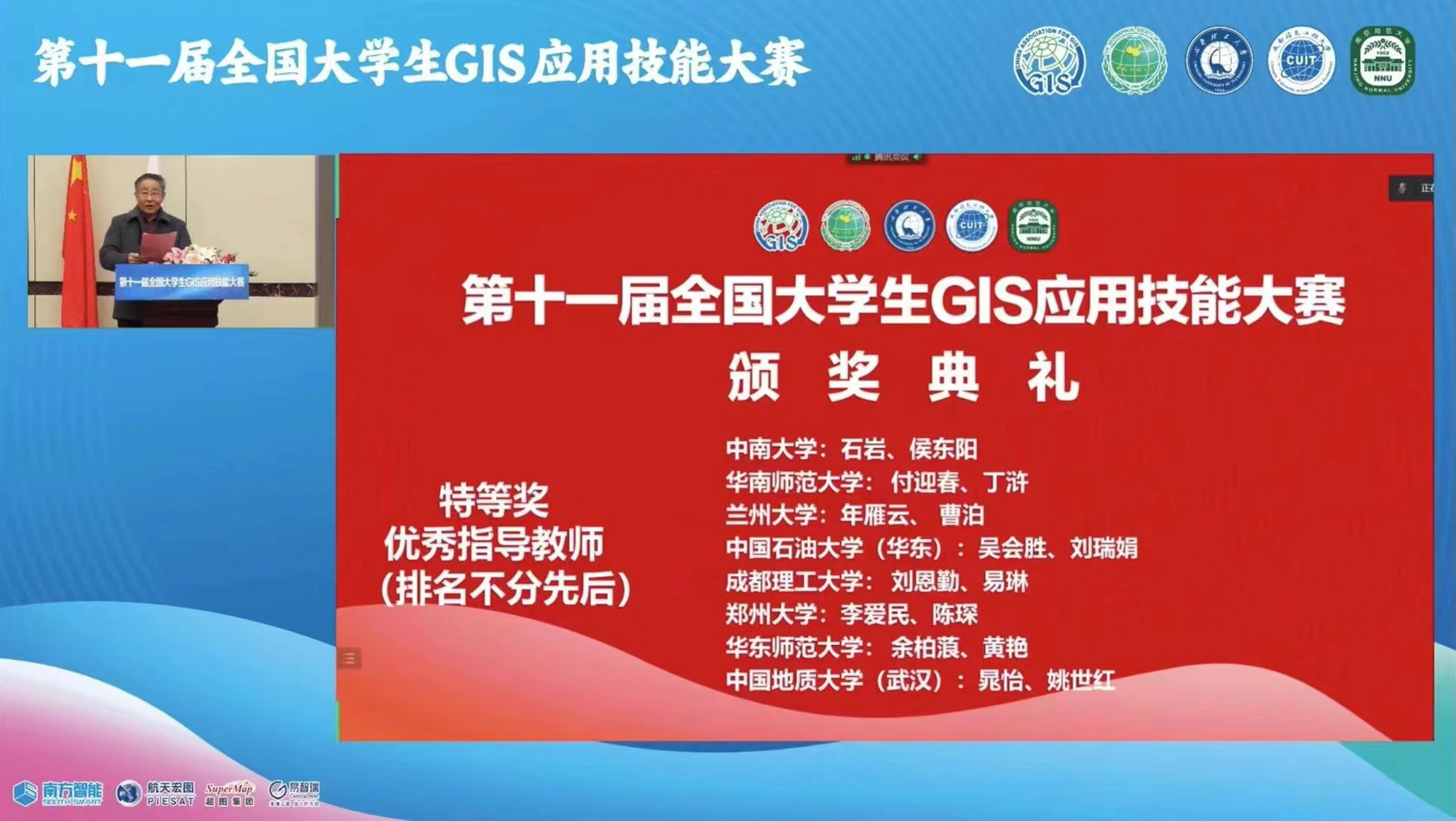 11月18日-20日,由中国地理信息产业协会、中国地理学会主办的“第十一届全国大学生GIS应用技能大赛”在成都理工大学举行,共有来自全国各高校共180支队伍参赛,经过激烈角逐,由完美网页版地理科学学院2020级本科生祁宁宁、赵博旸、陈秀静、杨宗翰组成的参赛团队斩获特等奖,余柏蒗、黄艳获优秀指导教师奖,这是完美网页版连续第三年斩获全国大学生GIS应用技能大赛特等奖。