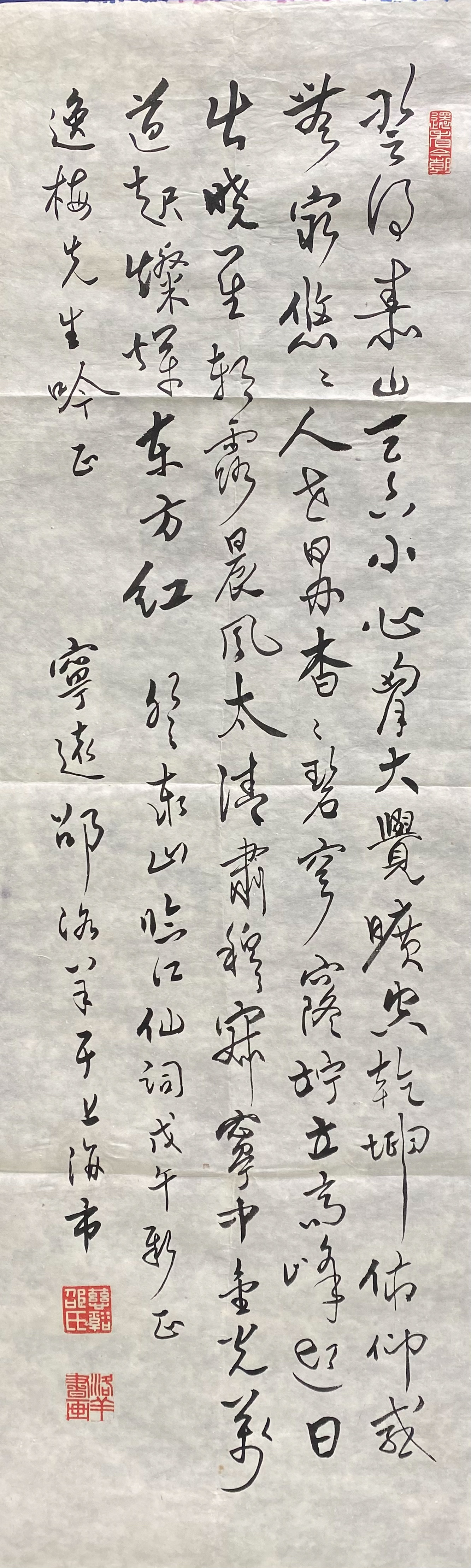 赵冷月(1915-2002),书法家。幼从其祖介甫习字,后从徐墨农学书,先学褚河南,后学二王和颜平原,上追汉隶北魏,气韵与骨力并重,由无我进入有我,自成一家。客居沪上,1993年举办书法展。为上海书法家协会常务理事。1986年被聘为上海文史馆馆员。