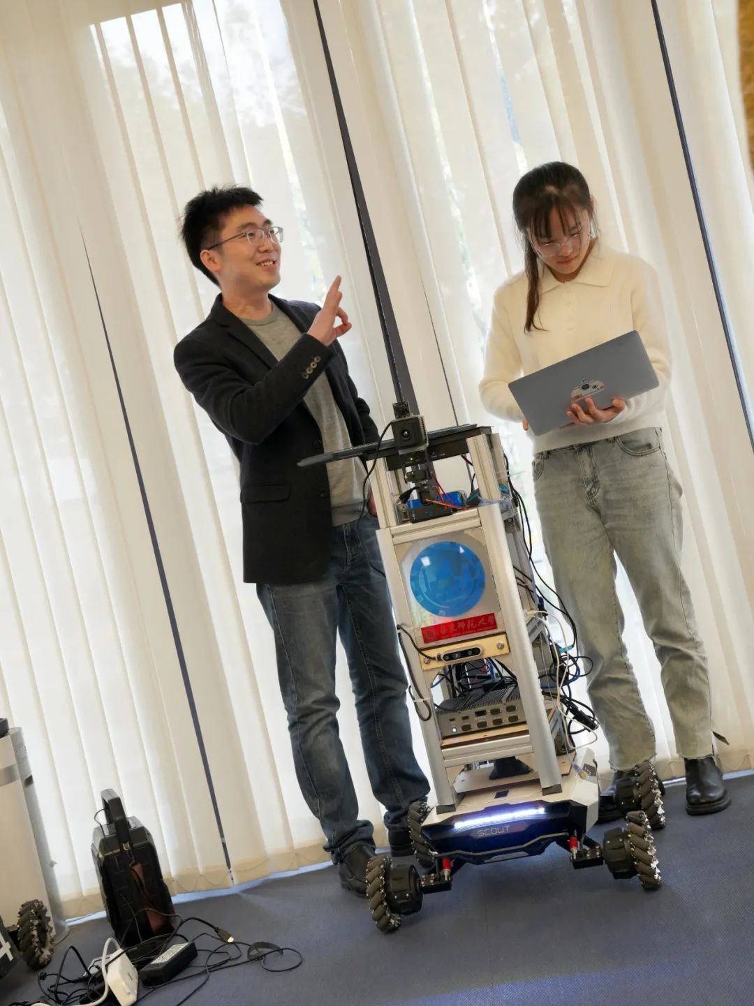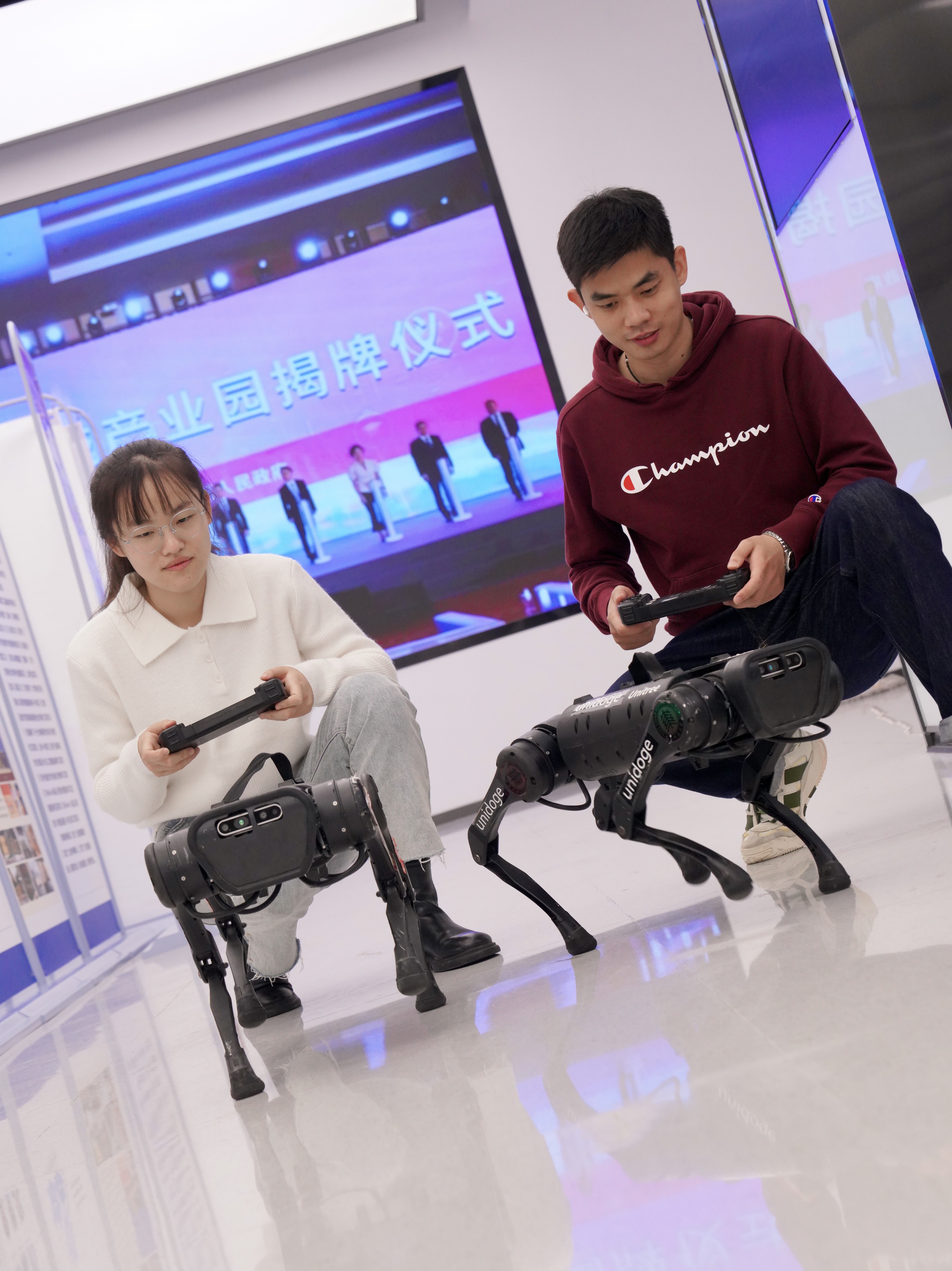 仿生四足机器人如一群活泼好动的大狗吸引了在场师生的目光,大家对其智能化的设计赞不绝口。