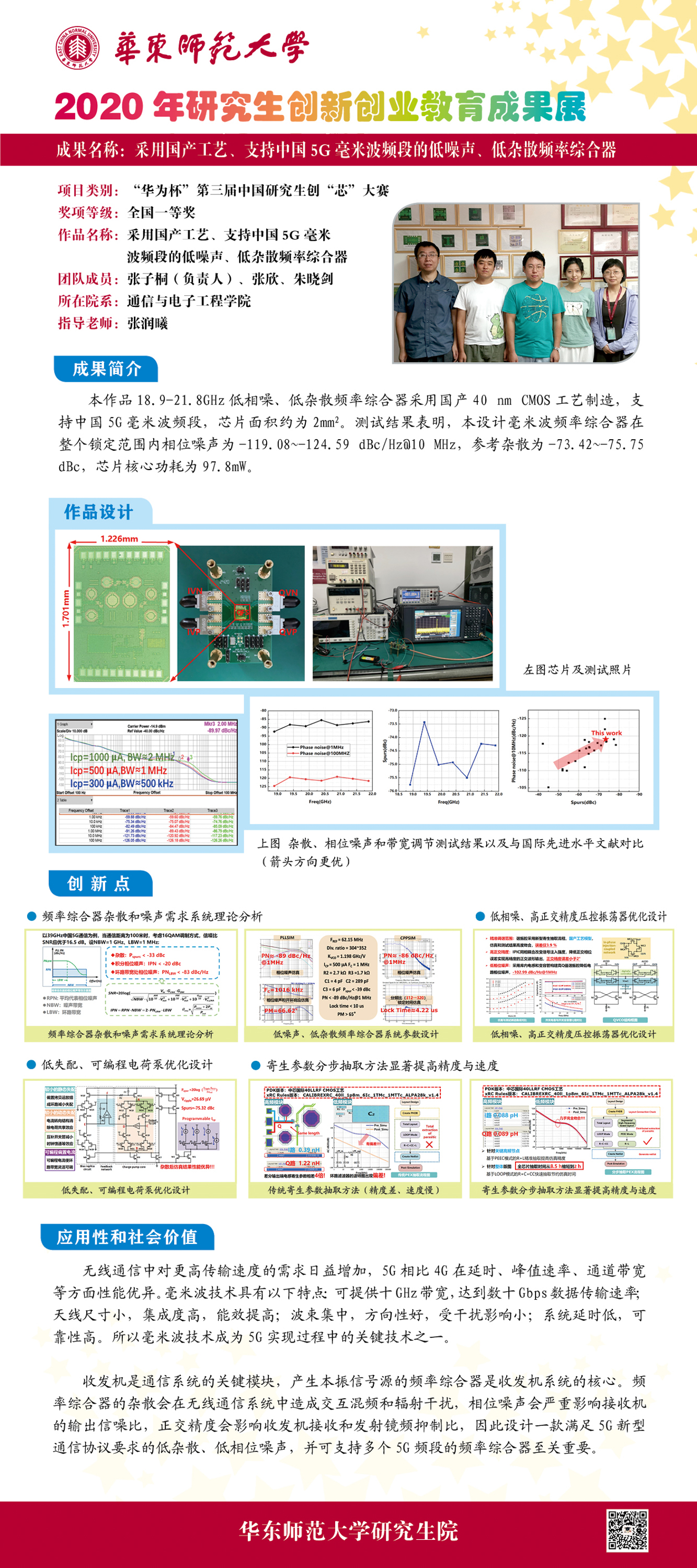 作品名称:采用国产工艺、支持中国5G毫米波频段的低噪声、低杂散频率综合器