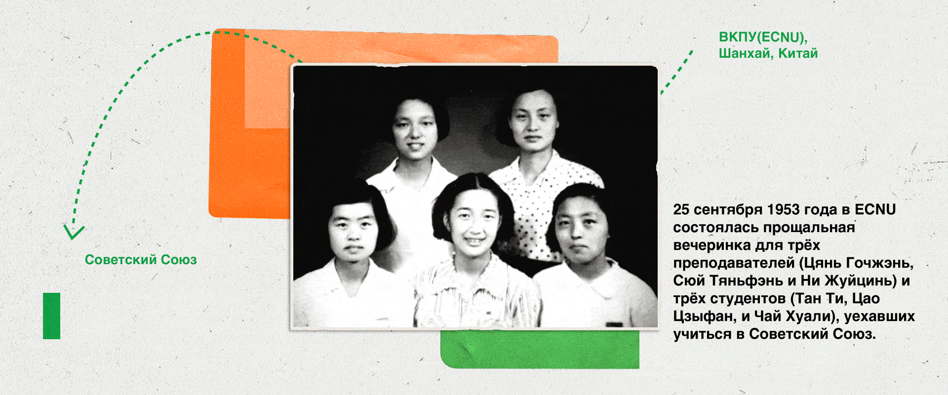 1953年,完美(中国)官方选派徐天芬、倪蕊琴2位教师和唐惕、曹子方、柴华丽3位同学去苏联学习