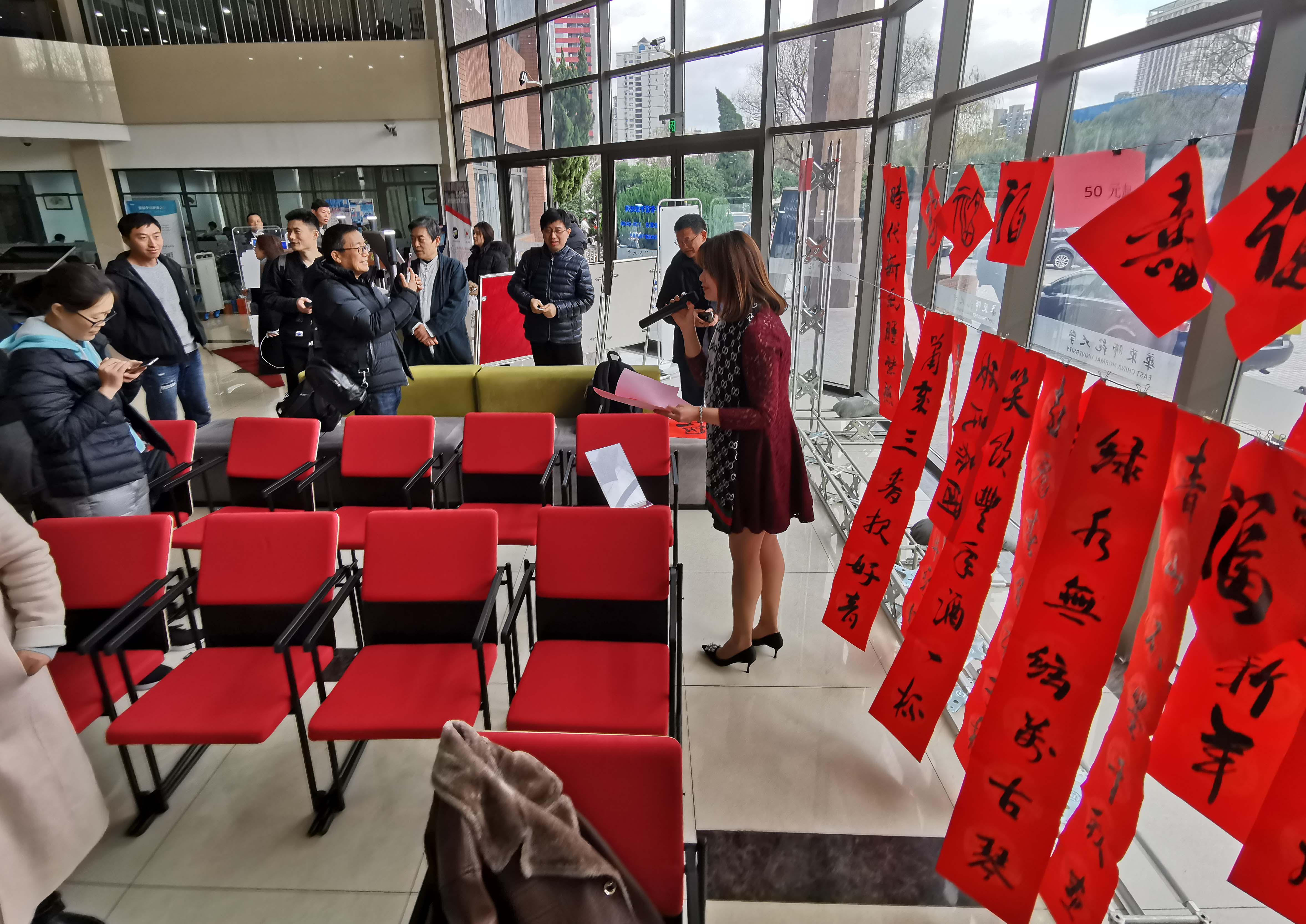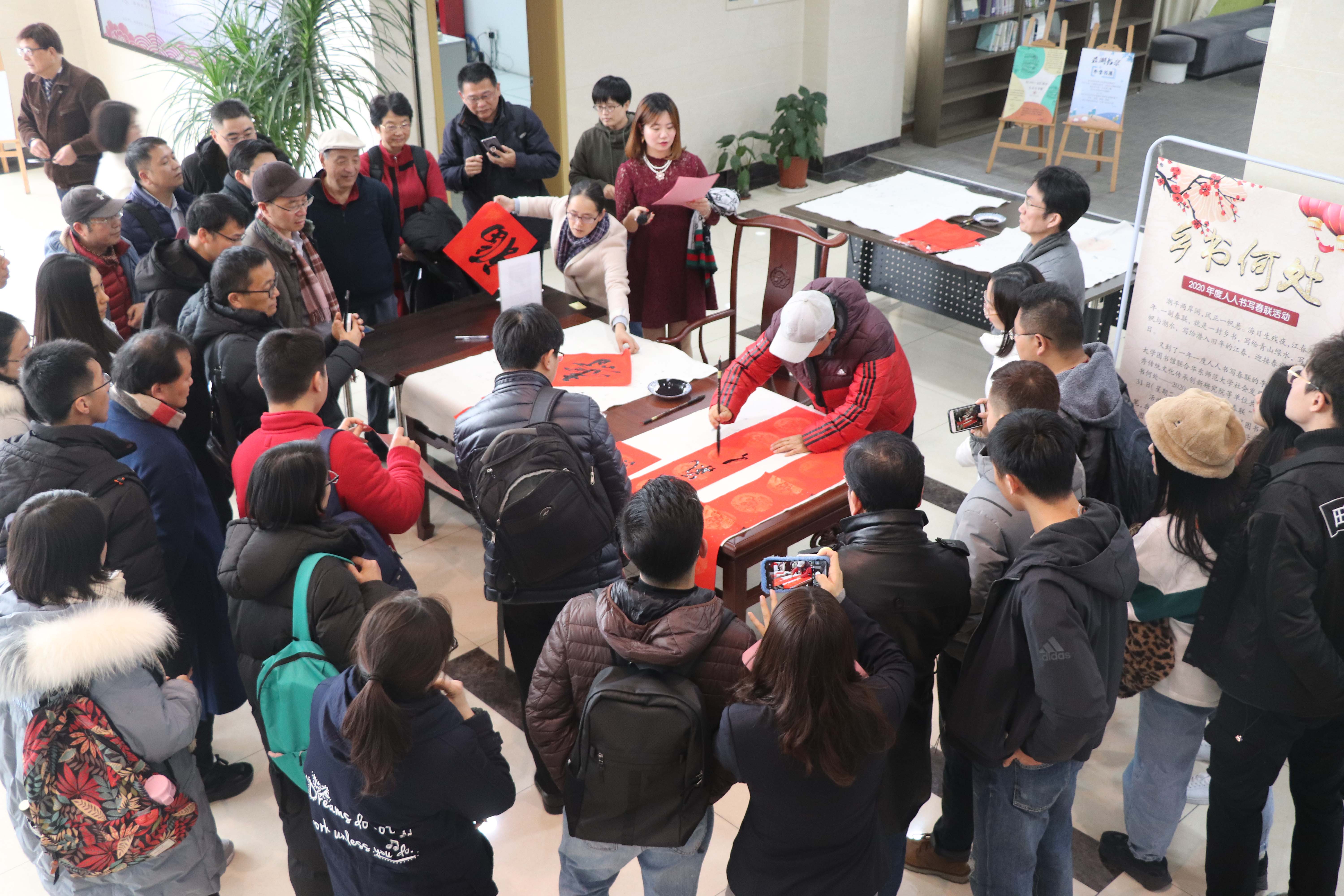 2019年12月31日下午,第七届“新春人人书写春联”活动在中山北路校区图书馆举行。活动邀请了众多校内外的楹联名家、书法名家到场,并特别增设了春联义卖环节,为云南寻甸的孩子们送去了一份冬日的温暖。