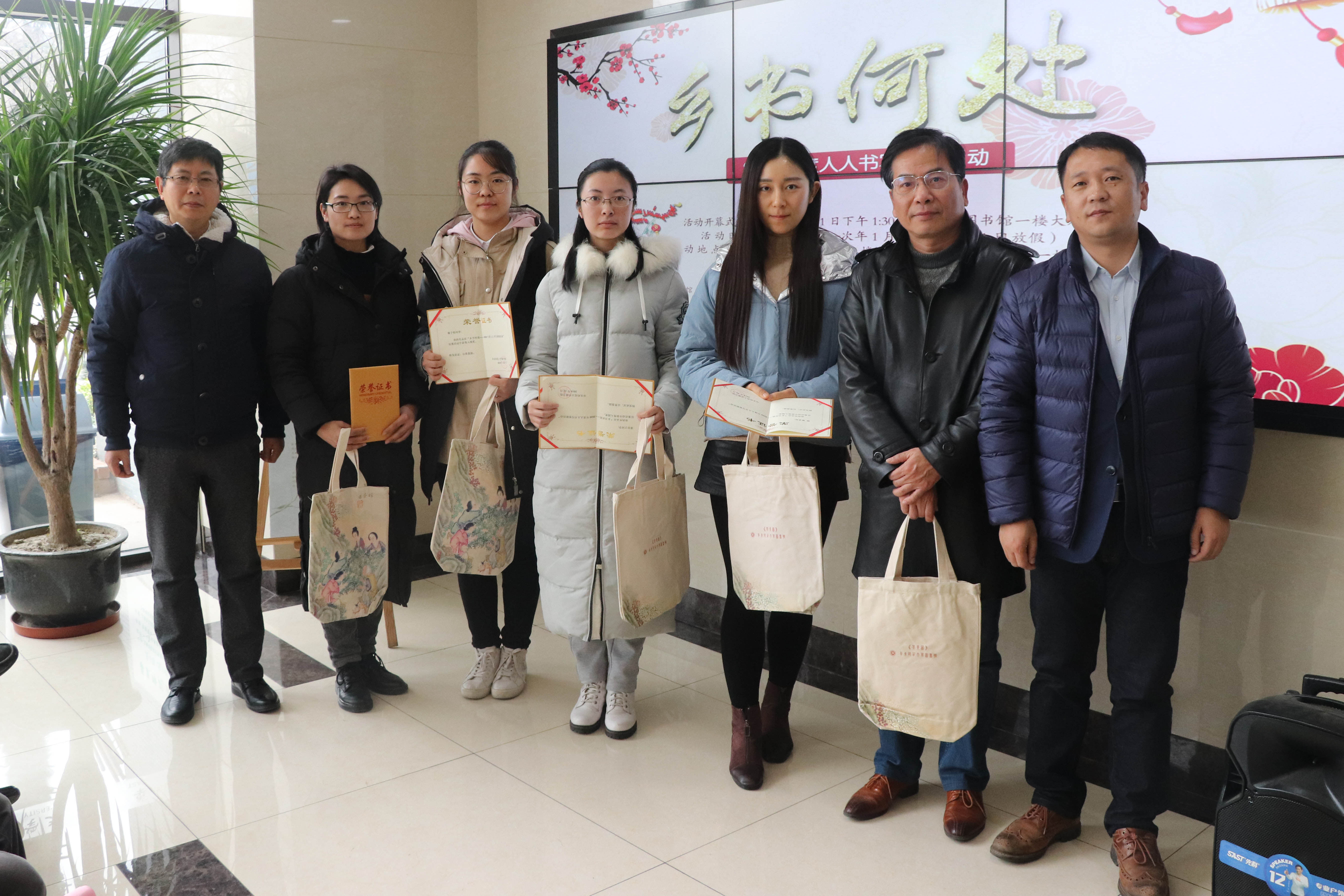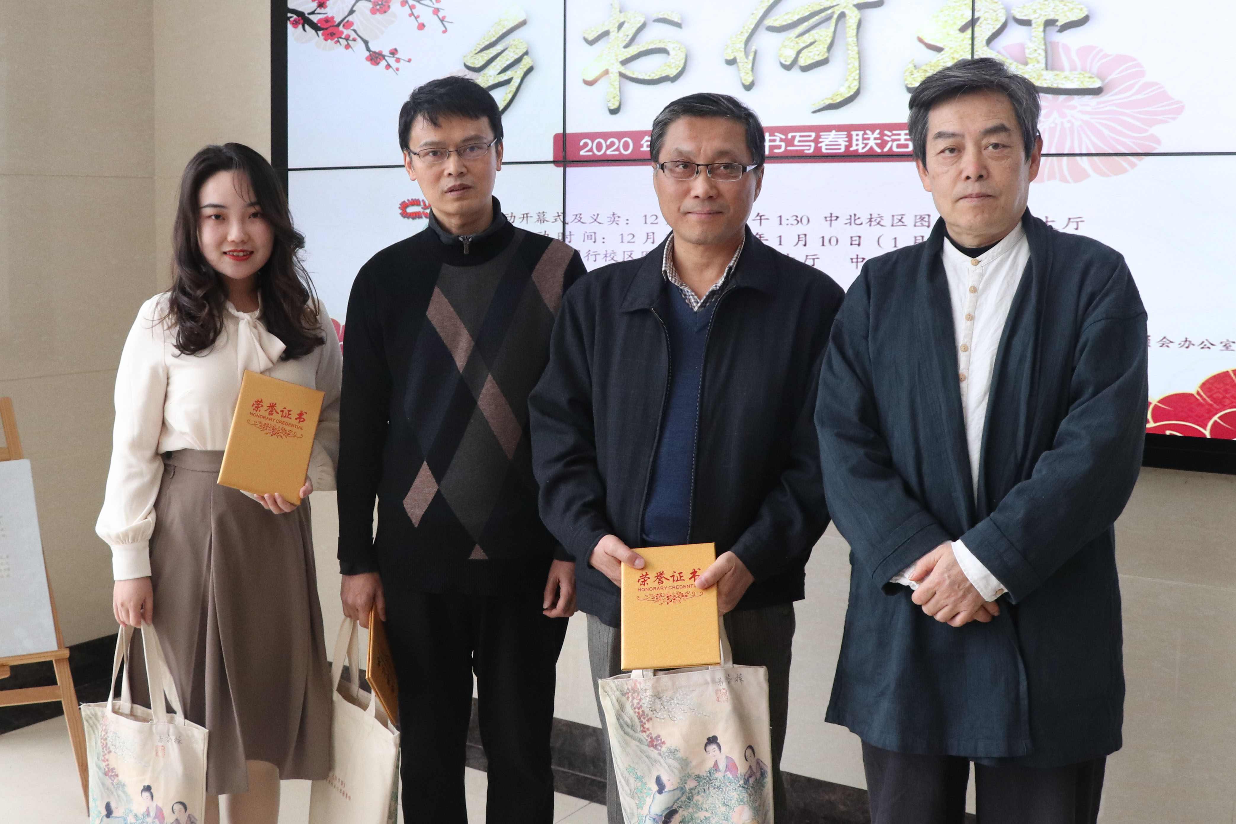 春联征集活动入围奖和优秀奖的师生们获颁证书和纪念品