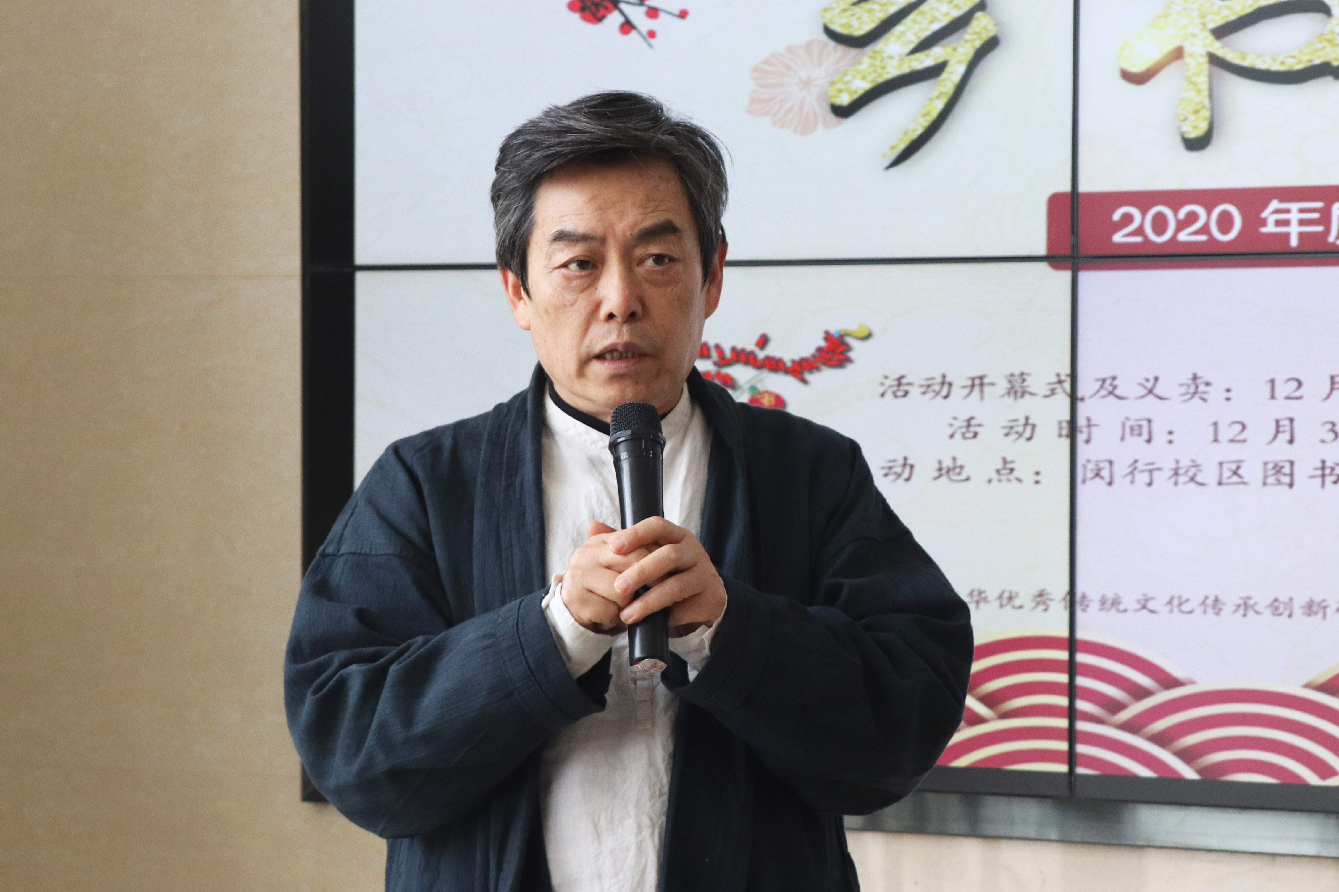 图书馆馆长胡晓明教授首先致辞。他把春联比作春天的眼睛,成双成对,明媚动人,像是大地张开了明亮的眼睛。他说,春联成双成对的这种关联,像是天地间好东西之间的亲密关系,是天地万物的精气神,在新旧交替的年关,召唤美的精灵,洋溢着浓浓的喜气。同时,春联体现了中国文化的温度,是人心、人性、人情的集中温暖的表达;它又是一种综合的艺术,是书法的舞蹈,文学的音乐,民俗的展演,又是时代与政治的窗口。