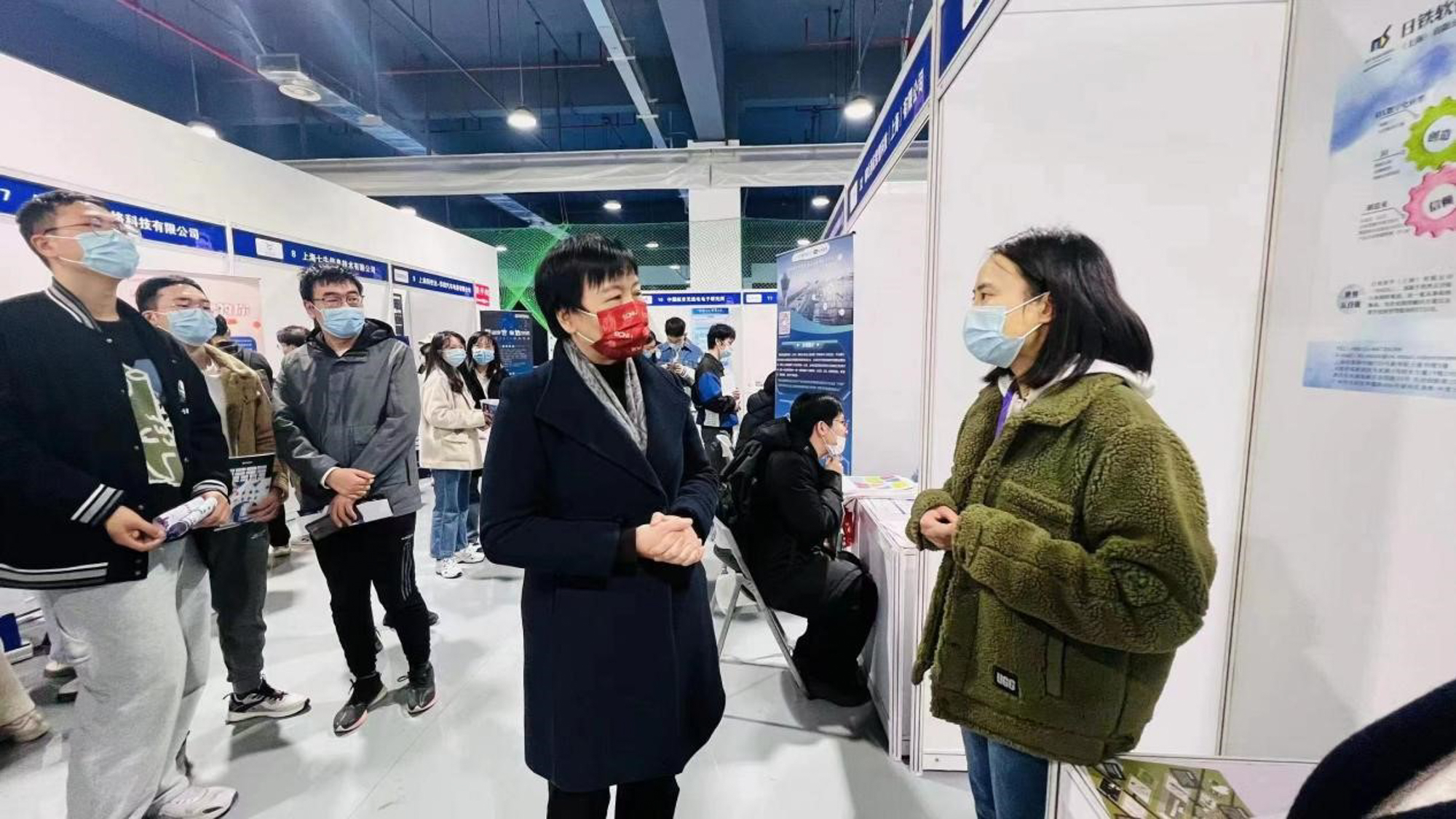 校党委副书记杨昌利深入招聘会现场,与用人单位代表及参会毕业生进行亲切友好交谈